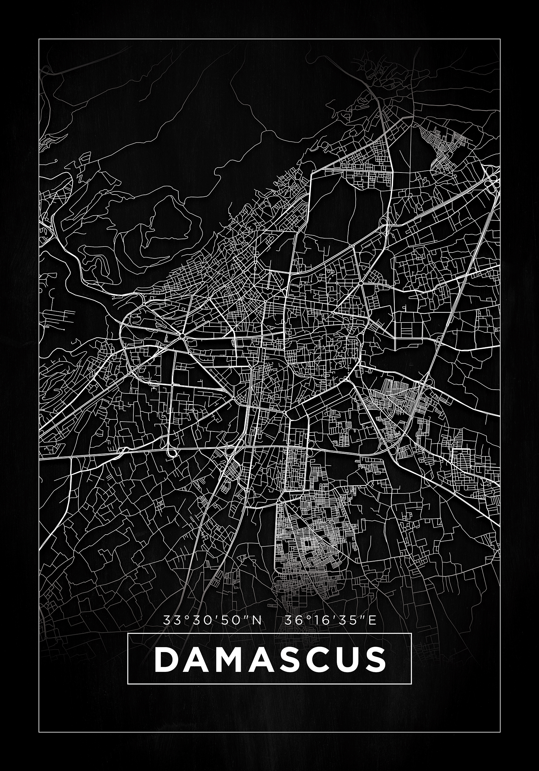 Map - Damascus - Black (21x29.7 cm (A4))