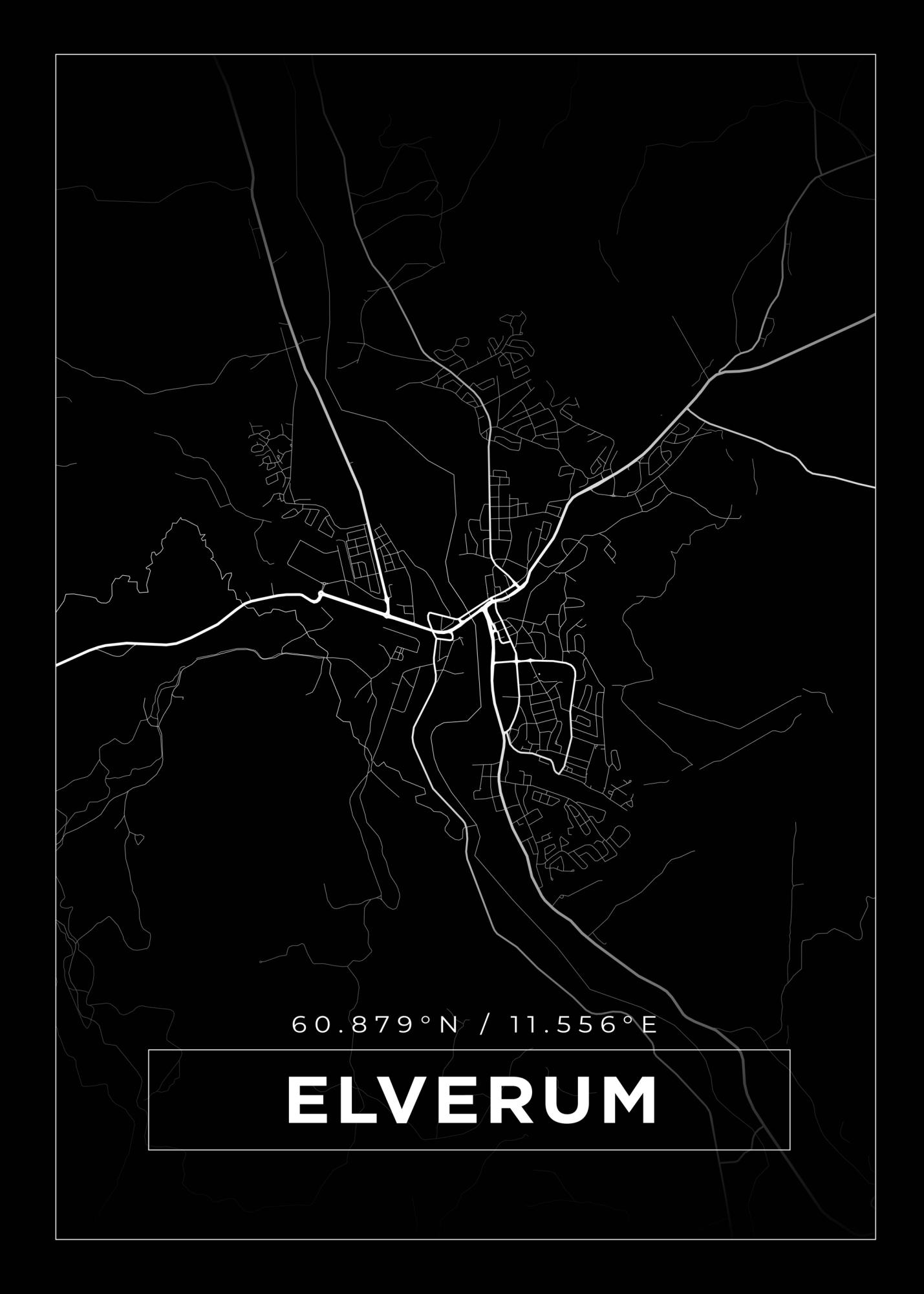 Map - Elverum - Black (21x29.7 cm (A4))