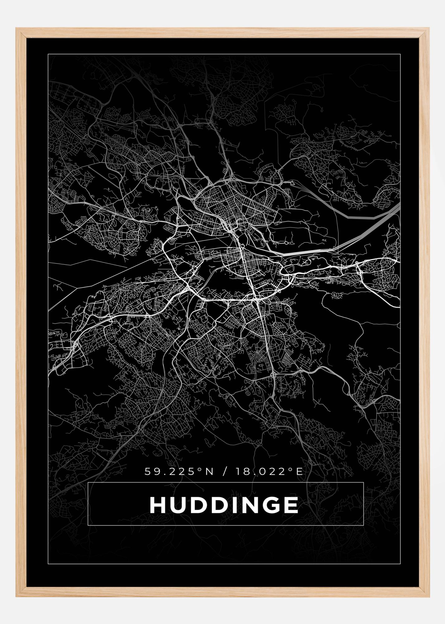 Map - Huddinge - Black Poster (21x29.7 cm (A4))