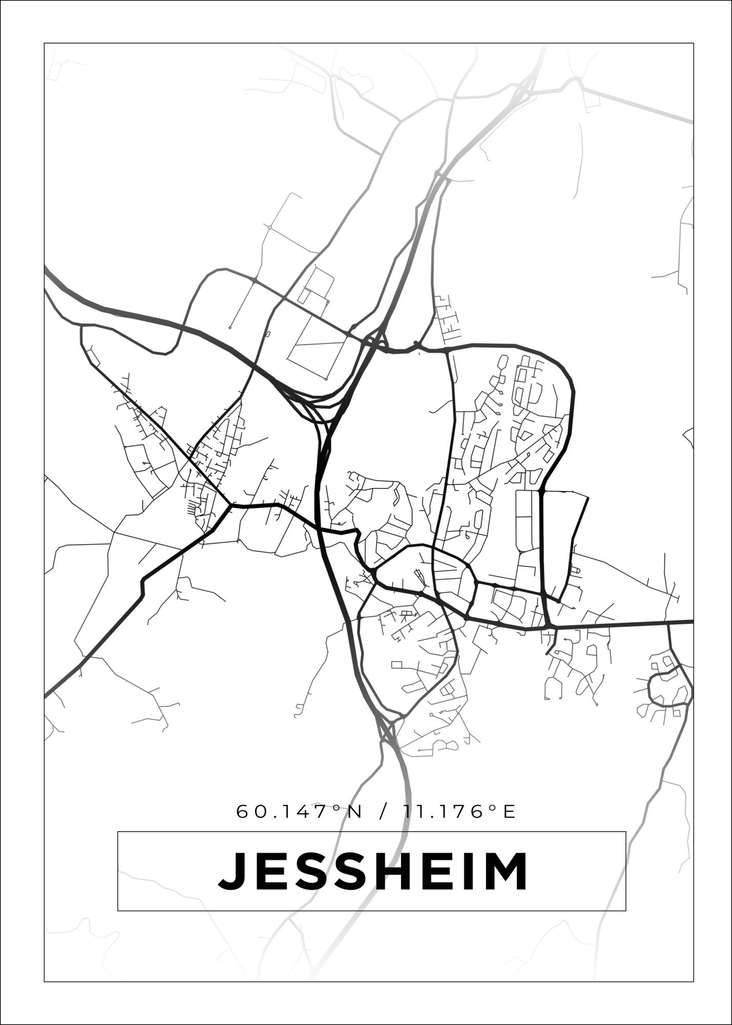 Map - Jessheim - White (21x29.7 cm (A4))