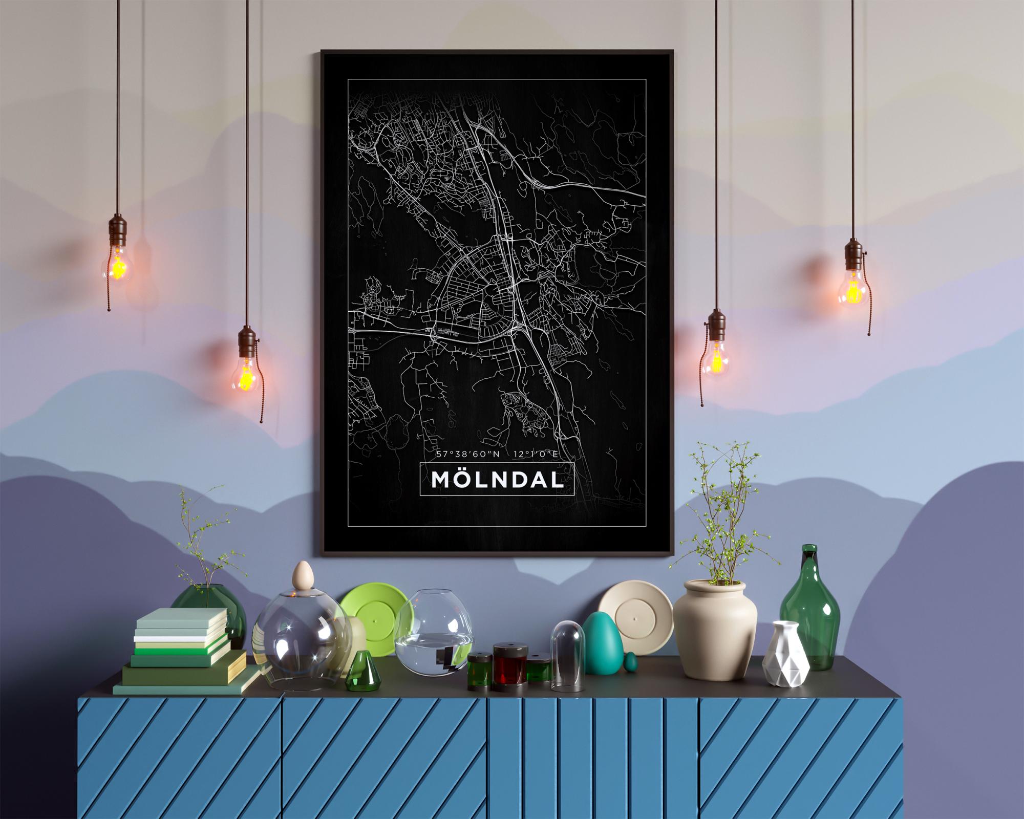 Map - Mölndal - Black Poster (21x29.7 cm (A4))