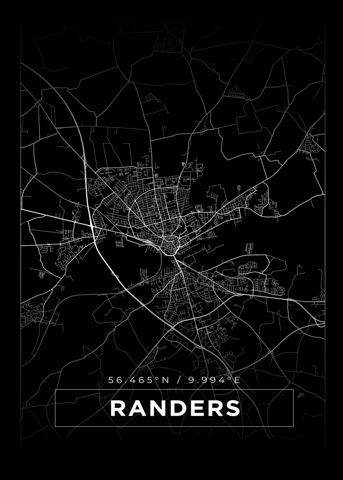 Map - Randers - Black (21x29.7 cm (A4))