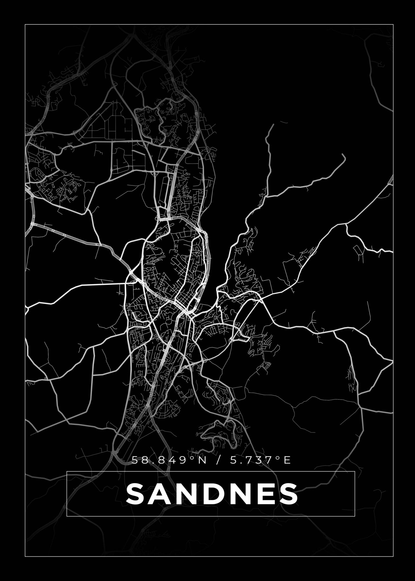 Map - Sandnes - Black (21x29.7 cm (A4))