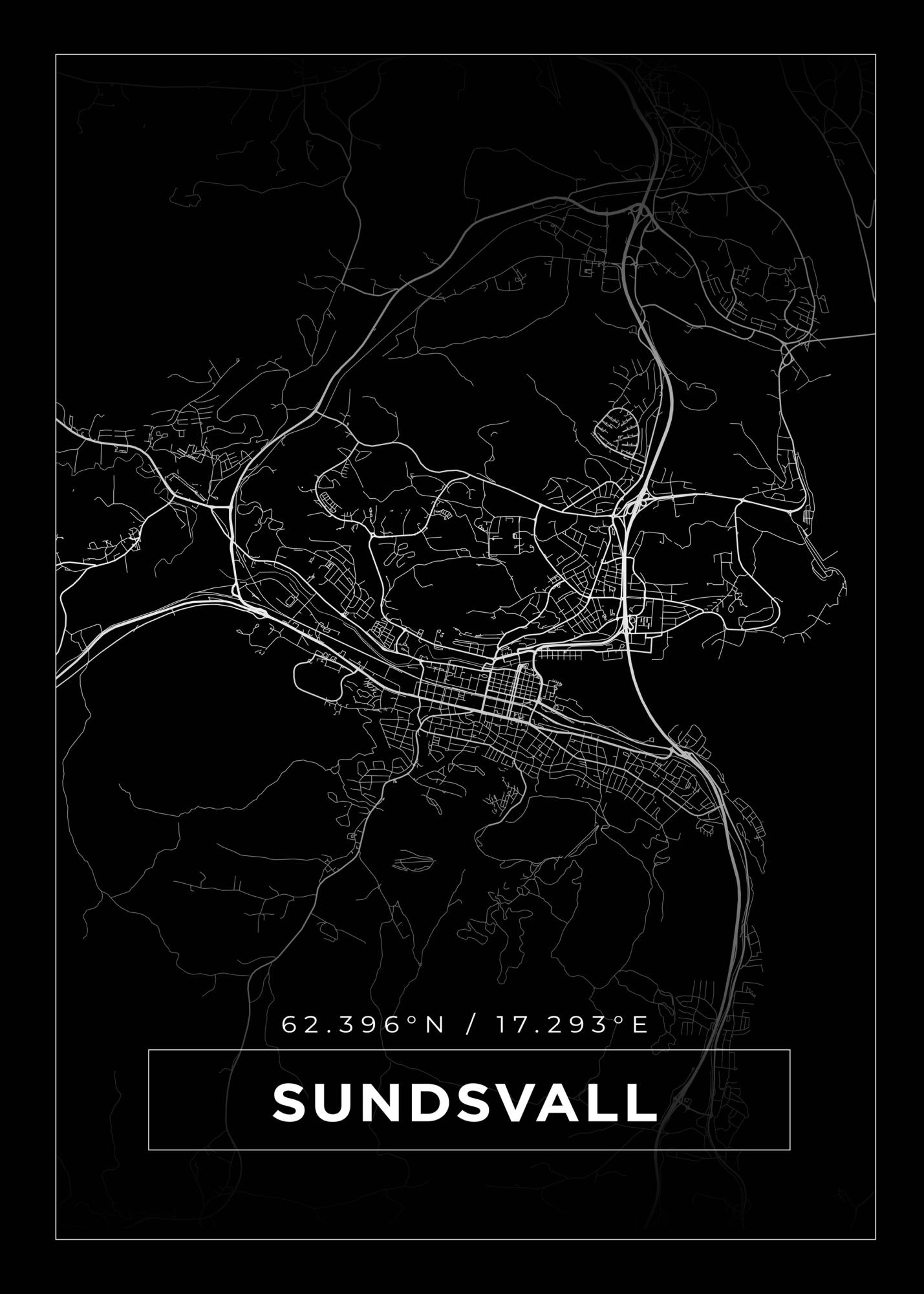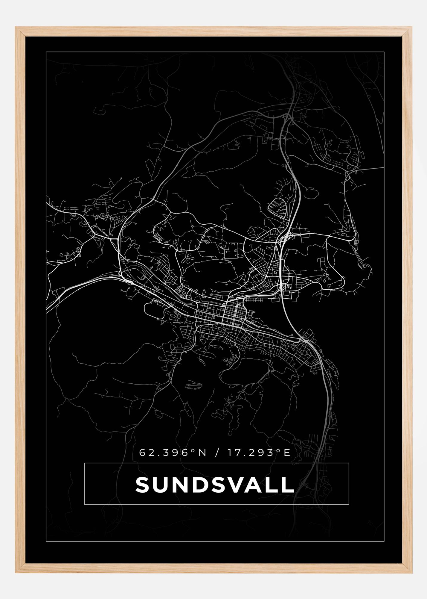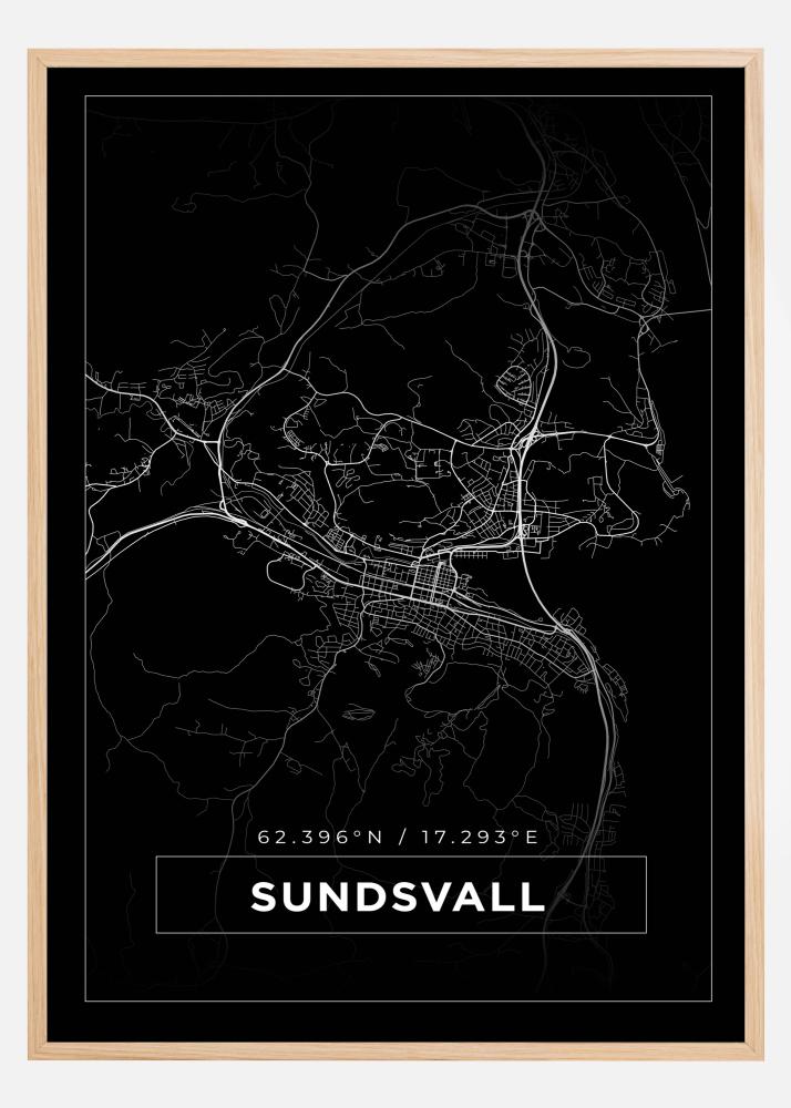 Map - Sundsvall - Black Poster (21x29.7 cm (A4))