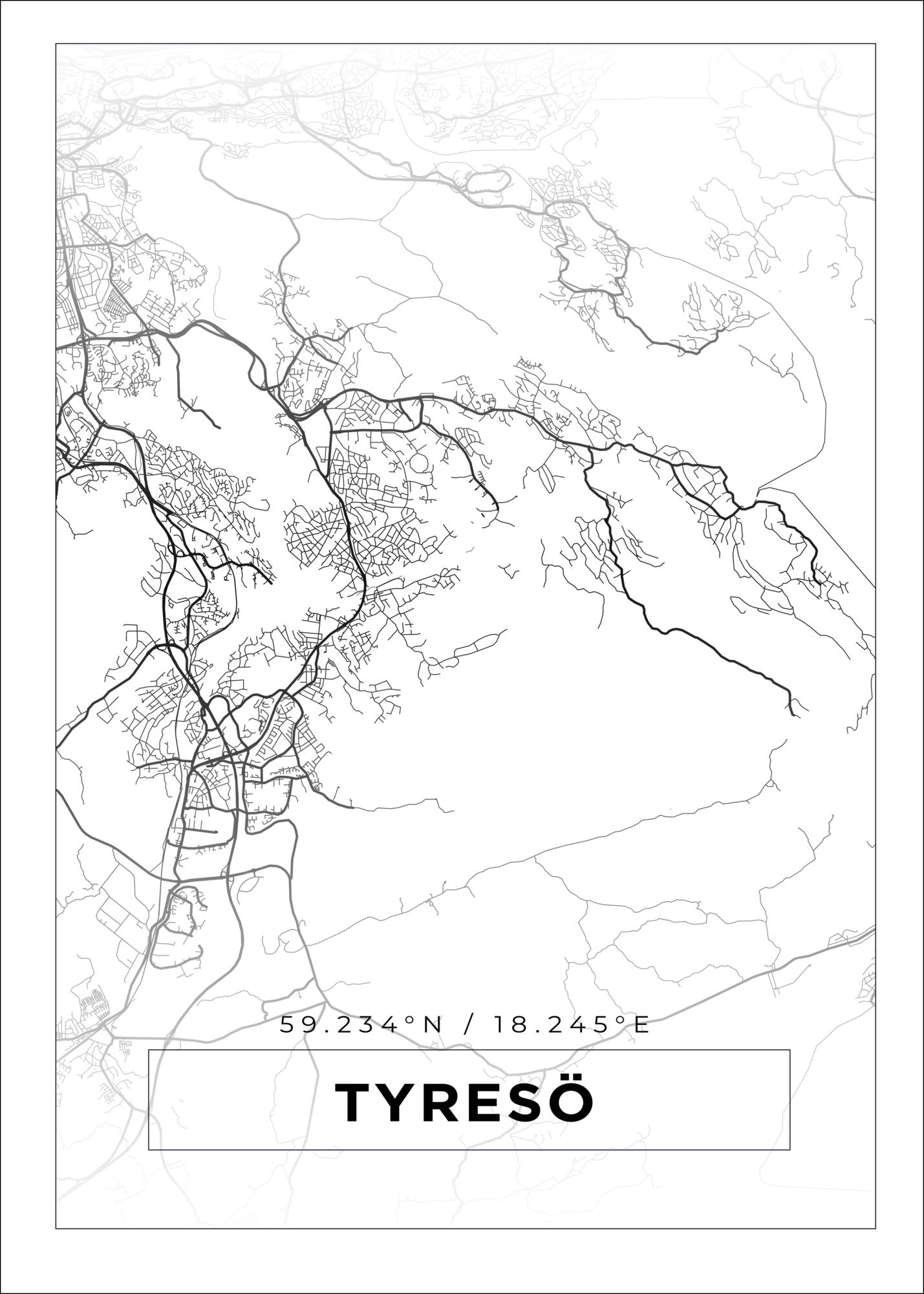 Map - Tyresö - White Poster (21x29.7 cm (A4))