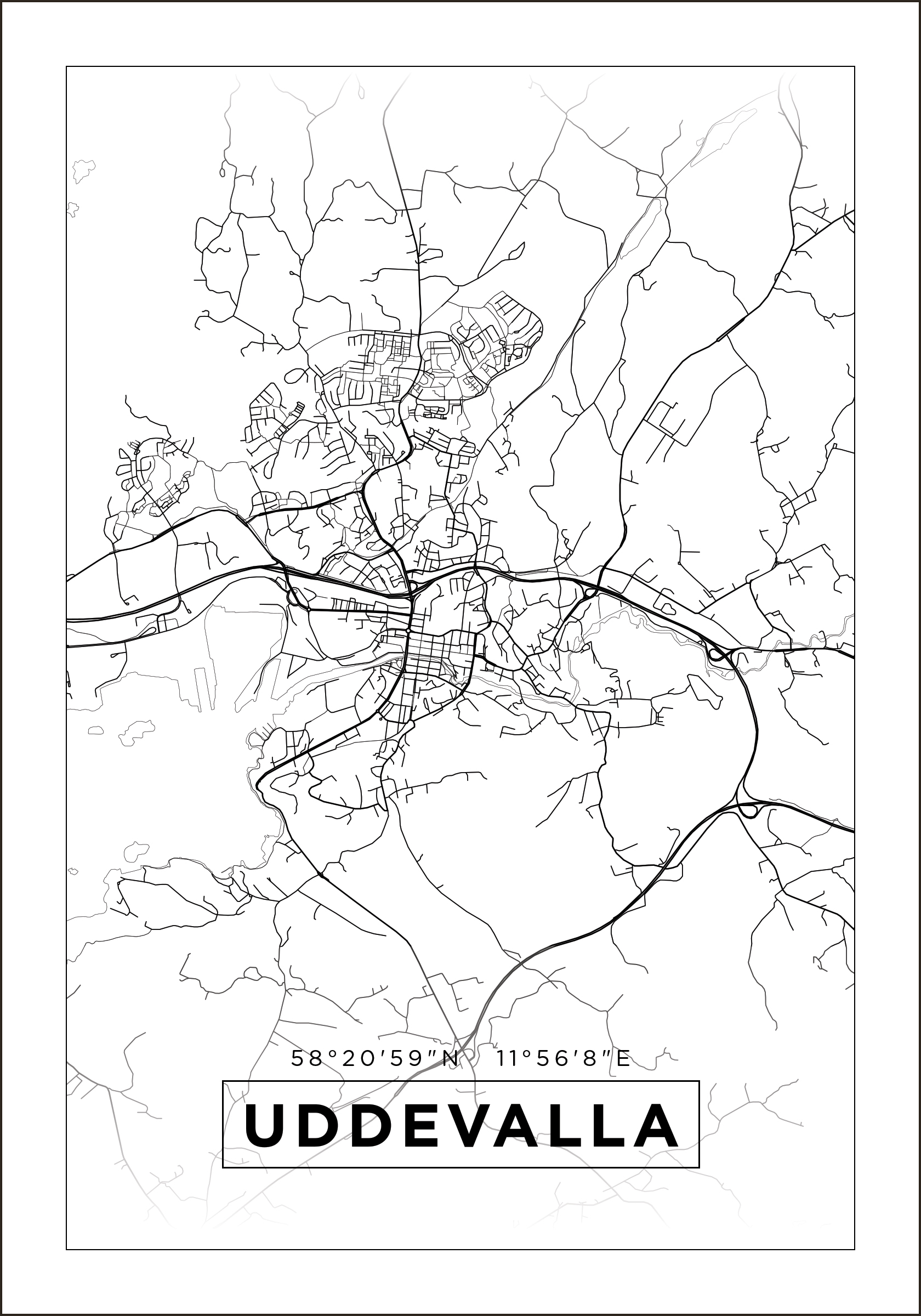 Map - Uddevalla - White Poster (21x29.7 cm (A4))