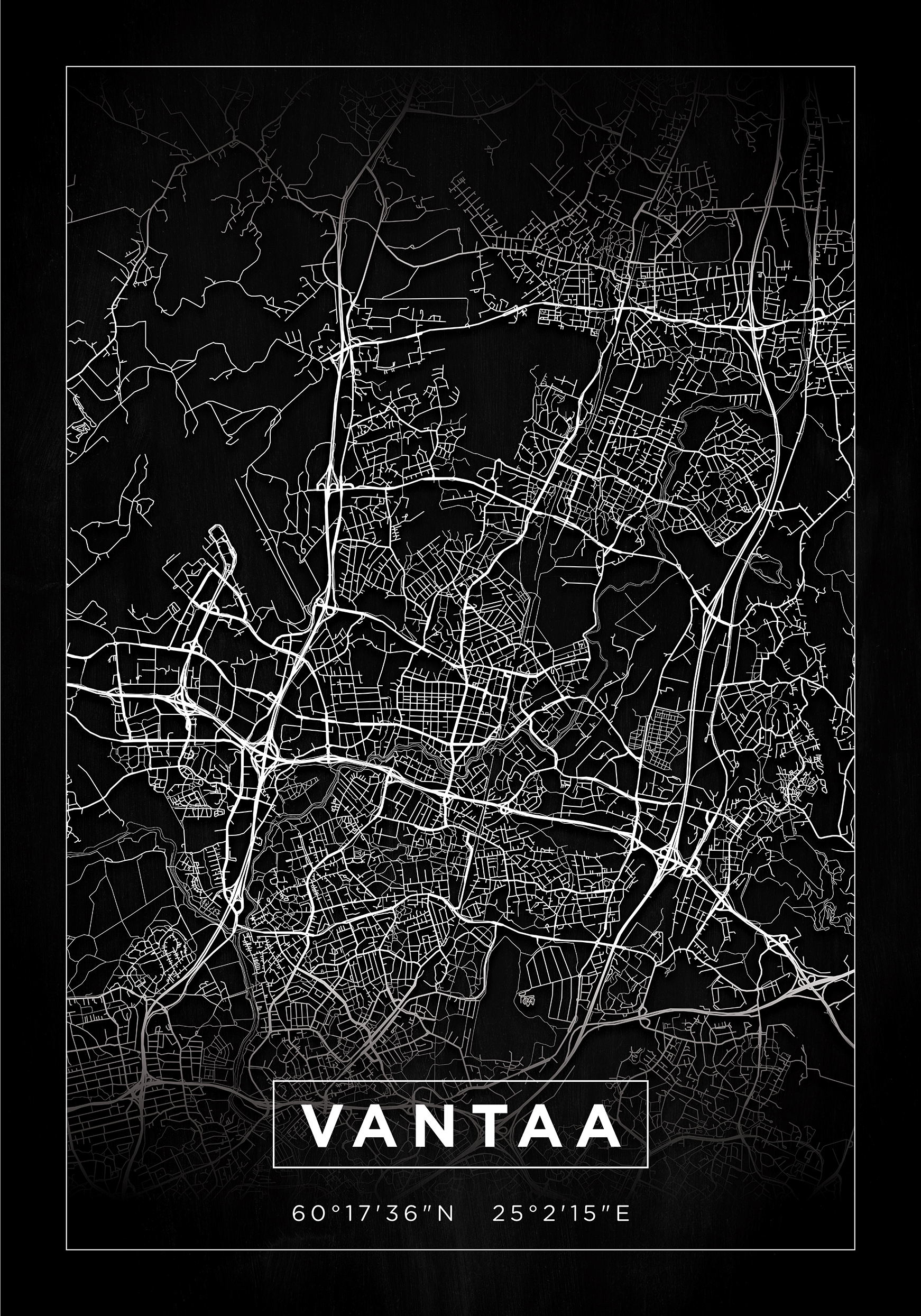 Map - Vantaa - Black (21x29.7 cm (A4))