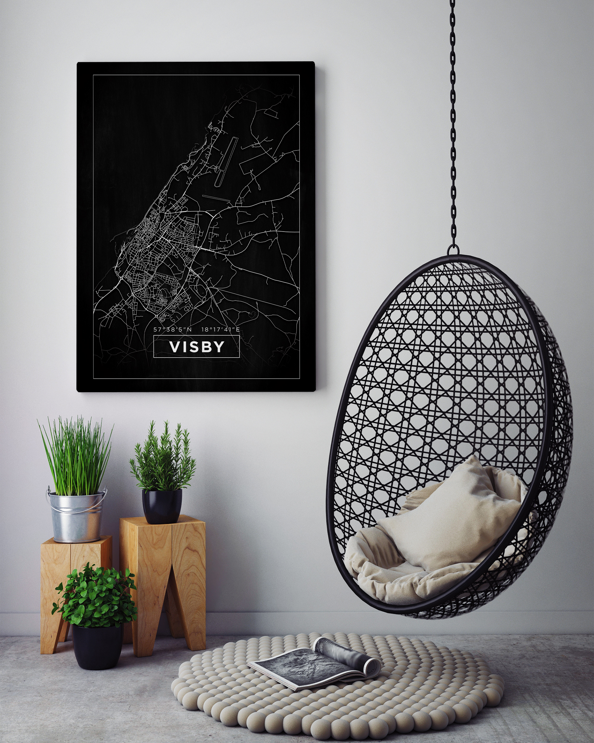 Map - Visby - Black Poster (21x29.7 cm (A4))