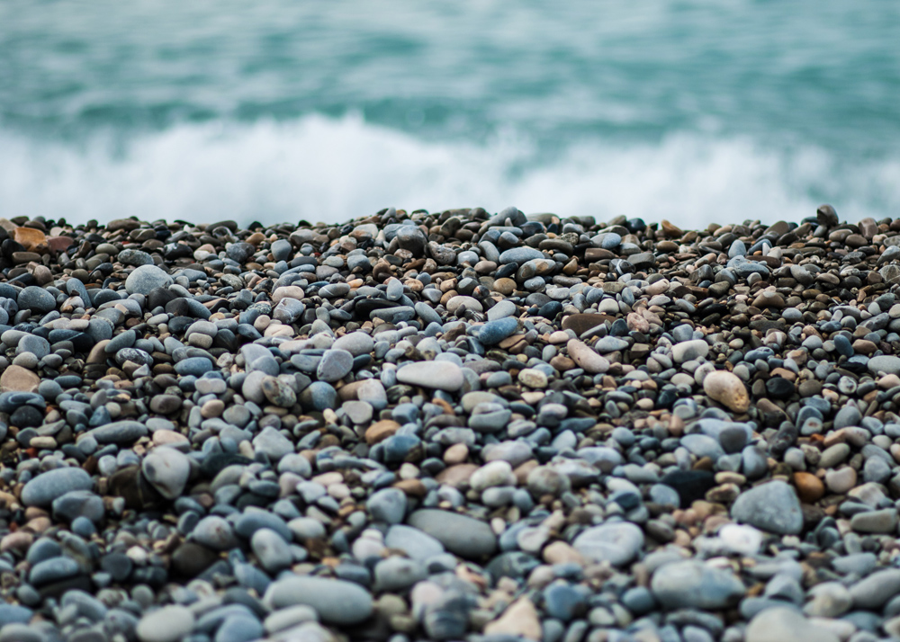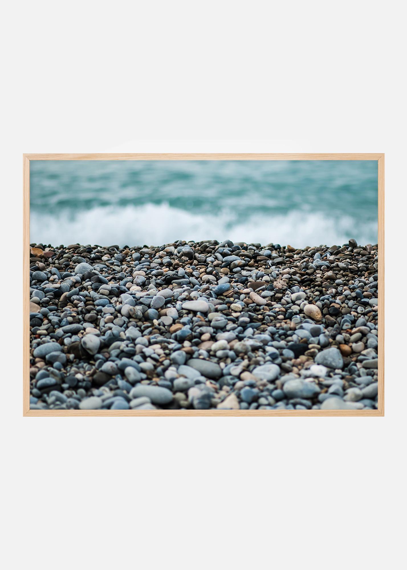 Hören Sie das Rauschen der Meereswellen von diesem poster mit einem schönen Kieselstrand im Vordergrund. Die kurze Schärfentiefe erzeugt ein interessantes Bild, das die Augen in das Bild zieht. Finden Sie ein Stück abgerundetes Glas zwischen den Steinen? Die graublaue Farbskala passt gut zu einem schmalen Rahmen gegen eine helle Wand, idealerweise mit maritimen Accessoires dazu.