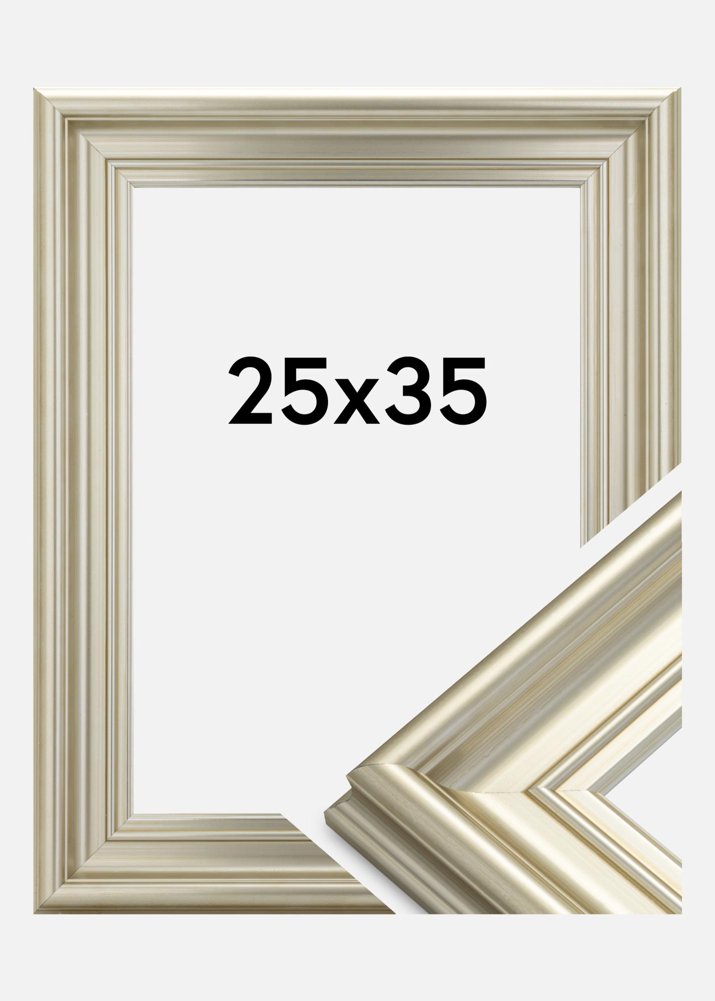 Mora Premium Silber ist einer unserer schönsten Rahmen. Hergestellt aus Holz aus unseren schönen schwedischen Wäldern und in unserer eigenen Rahmenwerkstatt zusammengebaut. Dadurch können wir dir eine Qualität versprechen, die den normalen Standard übertrifft. Der Bilderrahmen hat ein weiches silberfarbenes Profil in altem bemaltem Stil mit einer Breite von 57 mm. Perfekt für deine schönsten Fotos!