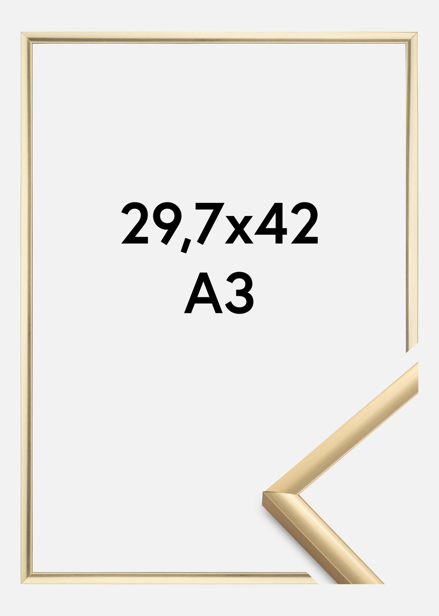 Dieser Acrylglas-Rahmen in Gold ist in vielen Größen erhältlich. Abgebildet ist die Rahmengröße 29,7x42 cm (A3).