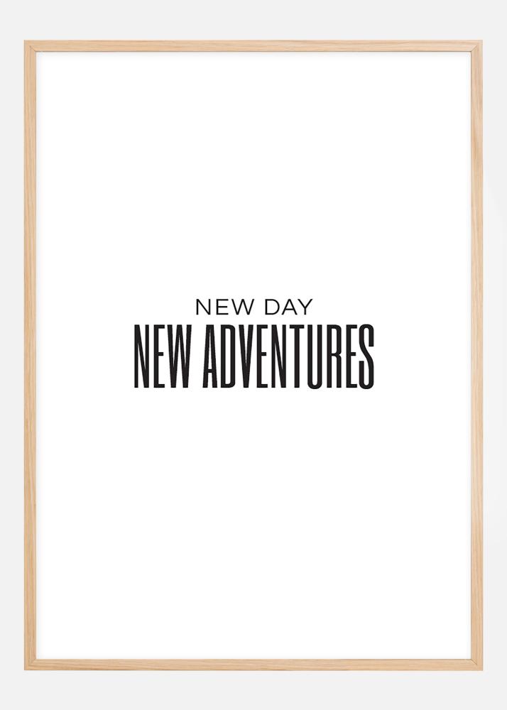 Ein einfaches und stilvolles Poster mit großen Versalien und der Botschaft "New day, New adventures". Textposter sind perfekte Elemente in größeren Collagen und Bildwänden. Ergänzen Sie gerne mit etwas aus unserem großen Sortiment an Bilderrahmen.