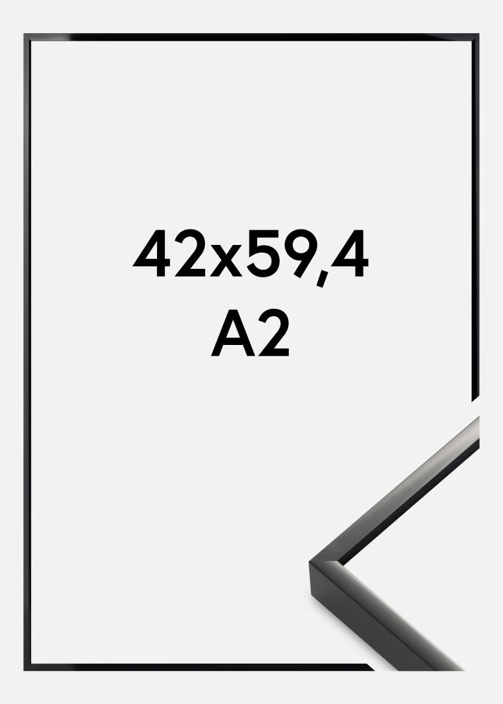 Eleganter Premium-Rahmen mit einer hochglänzenden, dünnen, schwarzen Rahmenleiste, der perfekt in ein modernes, stilvolles Interieur passt. Die Oberfläche des Bilderrahmens und sein minimalistisches schlankes Design machen ihn ideal für grafische Poster und Schwarzweißfotos. Der Rahmen besteht aus Aluminium und ist in vielen verschiedenen Größen erhältlich. Eine gute Option, wenn du eine Bilderwand mit Bildern in verschiedenen Formaten erstellen möchtest, die durch die Auswahl des Bilderrahmens zusammengehalten werden.