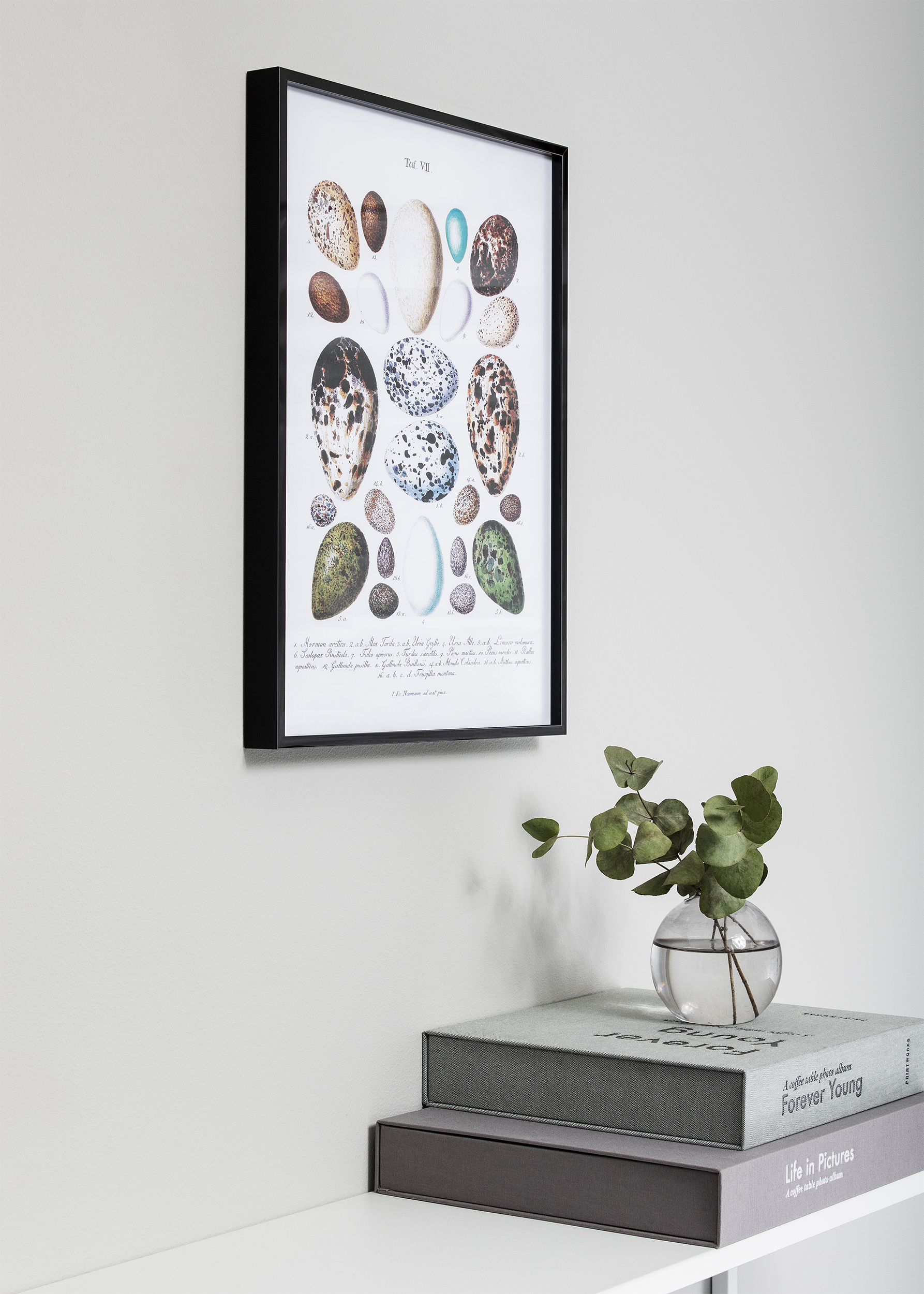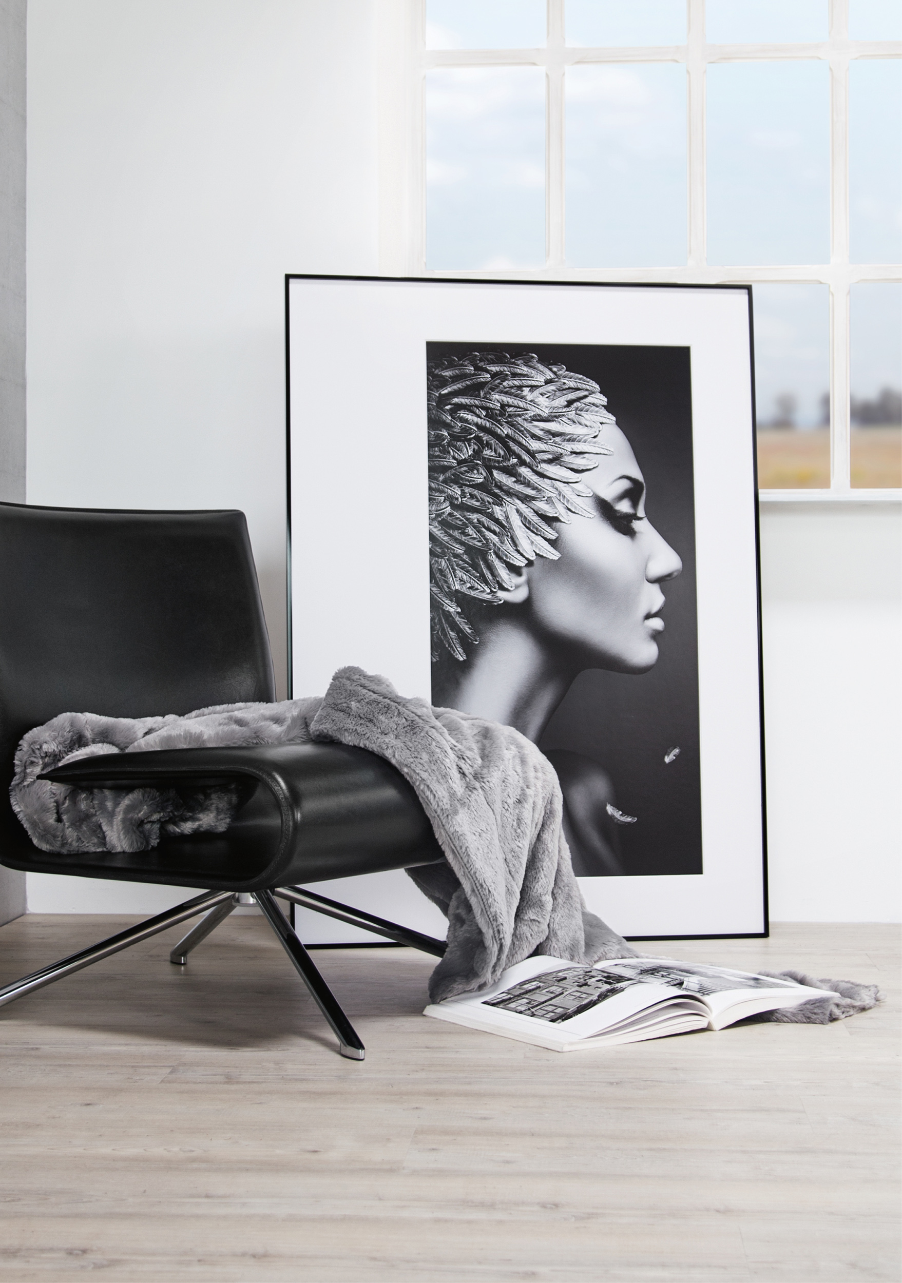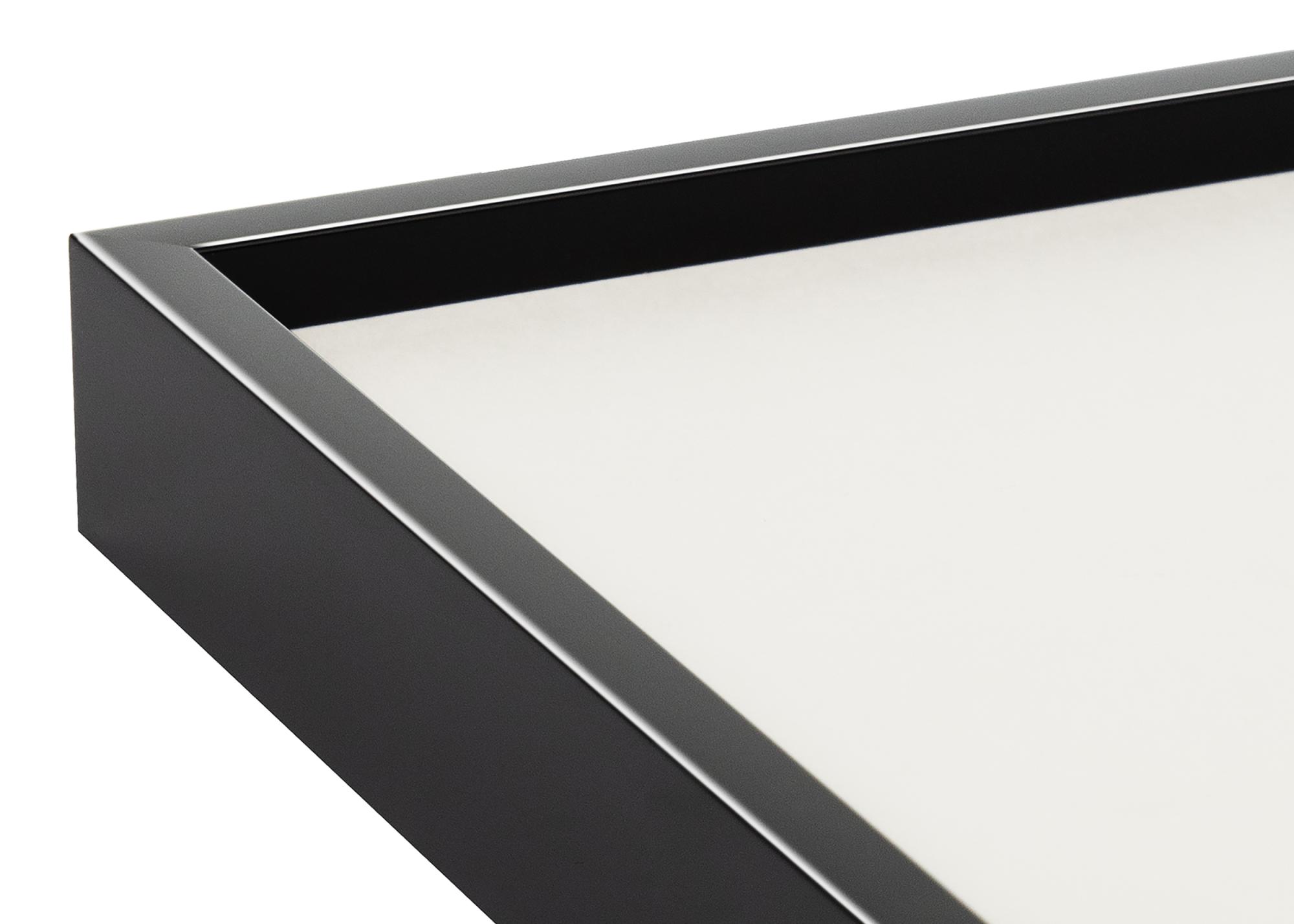 Eleganter Premium-Rahmen mit einer hochglänzenden, dünnen, schwarzen Rahmenleiste, der perfekt in ein modernes, stilvolles Interieur passt. Die Oberfläche des Bilderrahmens und sein minimalistisches schlankes Design machen ihn ideal für grafische Poster und Schwarzweißfotos. Der Rahmen besteht aus Aluminium und ist in vielen verschiedenen Größen erhältlich. Eine gute Option, wenn du eine Bilderwand mit Bildern in verschiedenen Formaten erstellen möchtest, die durch die Auswahl des Bilderrahmens zusammengehalten werden.