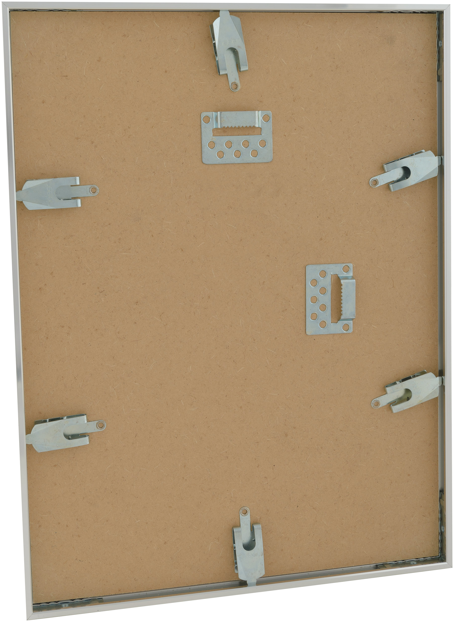 Stilvoller, glänzender, silberfarbener Rahmen von hoher Qualität, hergestellt in Deutschland mit einer dünnen Rahmenleiste aus Aluminium. Das minimalistische Design des Bilderrahmens passt gut in einen schlichten Einrichtungsstil und die dezente hellgraue Silberfarbe eignet sich genauso gut für Fotos und Poster. Die große Auswahl an Größen macht den Bilderrahmen perfekt für eine Bildercollage, bei der die Bildersammlung optisch zusammengehalten wird, indem du ähnliche Bilderrahmen wählst.