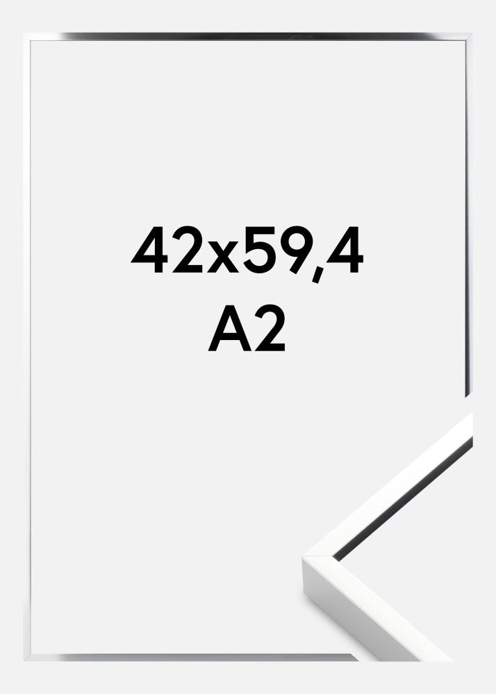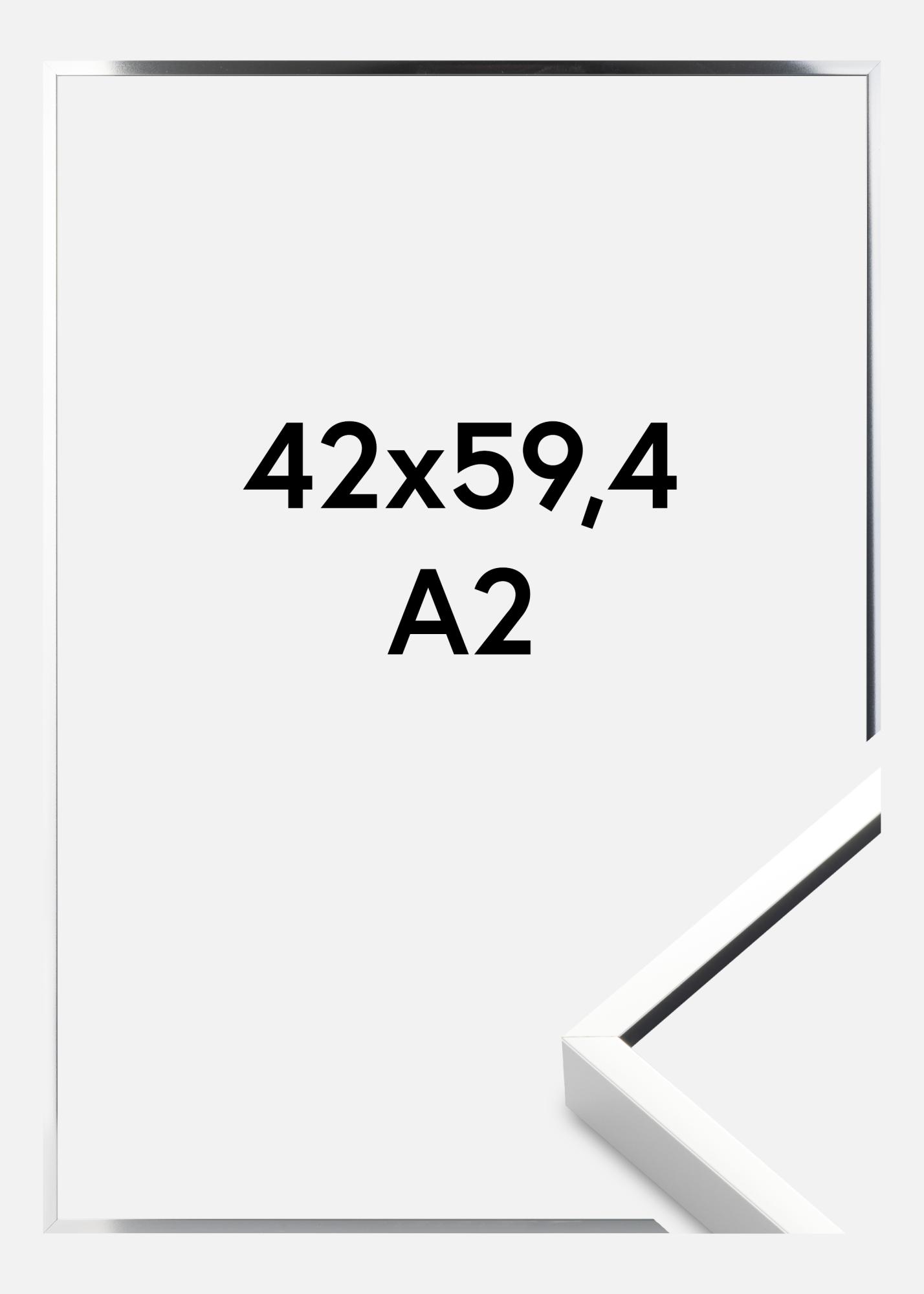 Stilvoller, glänzender, silberfarbener Rahmen von hoher Qualität, hergestellt in Deutschland mit einer dünnen Rahmenleiste aus Aluminium. Das minimalistische Design des Bilderrahmens passt gut in einen schlichten Einrichtungsstil und die dezente hellgraue Silberfarbe eignet sich genauso gut für Fotos und Poster. Die große Auswahl an Größen macht den Bilderrahmen perfekt für eine Bildercollage, bei der die Bildersammlung optisch zusammengehalten wird, indem du ähnliche Bilderrahmen wählst.