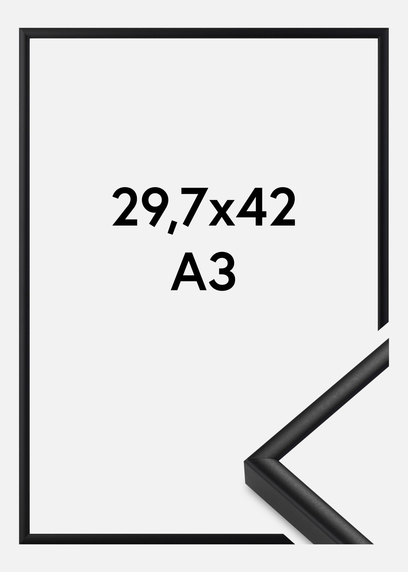 Klassischer matter Aluminiumrahmen in Schwarz mit dünnem Profil und modernem Design. Einer der besten Aluminiumrahmen von Nielsen mit hoher Qualität in allen Details. Perfekt, wenn du einen stilvollen Bilderrahmen suchst, der deinem Motiv eine klassische Umrahmung gibt.
