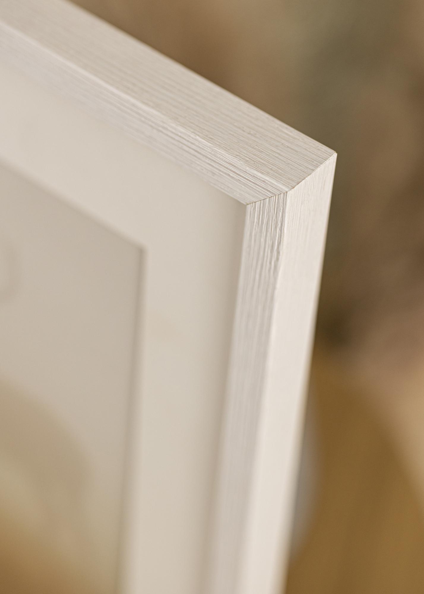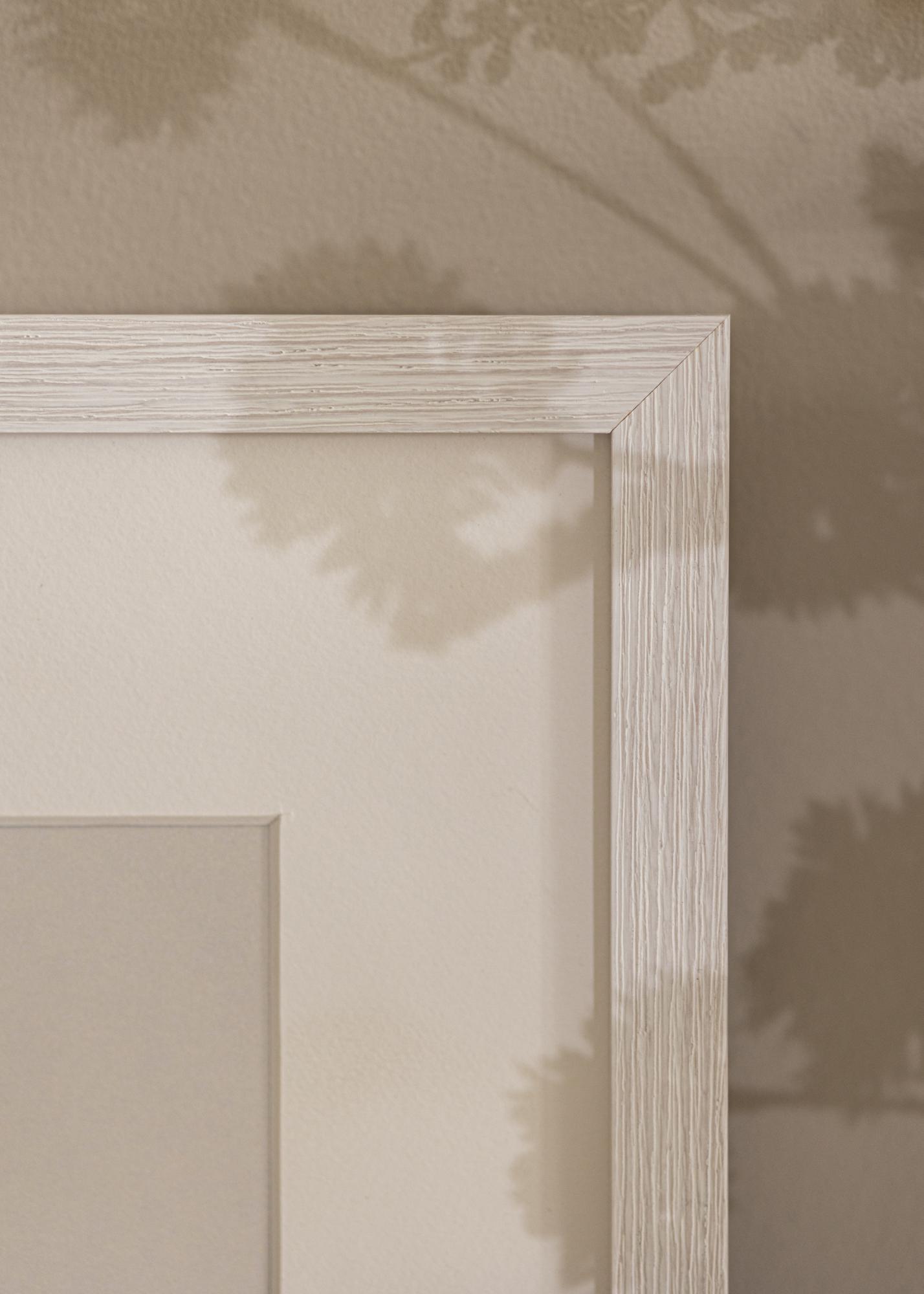 Stilvoller weißer Holzrahmen von hoher Qualität mit einem lasierten Look, der die Holzmaserung durchscheinen lässt. Die schmale Rahmenleiste passt genauso gut in einen modernen Einrichtungsstil wie in ein rustikales Interieur, in das sich die lasierte weiße Farbe gut einfügt. Der Bilderrahmen eignet sich hervorragend für Poster, Aquarelle und Fotos und ist in verschiedenen Größen erhältlich. Kombiniere den Bilderrahmen mit verschiedenen Fotos in unterschiedlichen Formaten miteinander und hänge sie nebeneinander, um eine schöne Bilderwand zu kreieren, die zu einem Blickfang an der Wand wird.