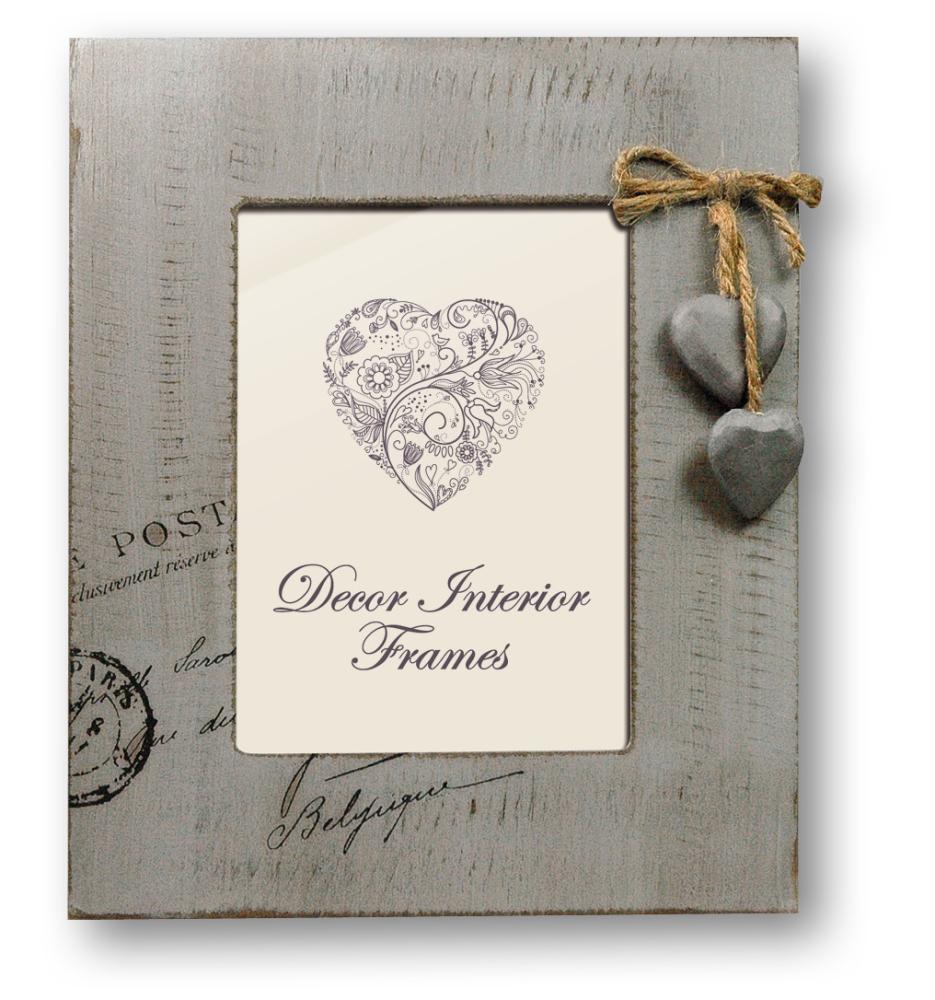 Nimes ist ein grauer Vintage-Rahmen mit einem abgenutzt wirkenden und handbemalten Look. Das Design des Bilderrahmens legt den Fokus auf niedliche Details, wie kleine süße Herzen, die an einer Hanfschnur hängen. Vintage und Romantik vom Feinsten!