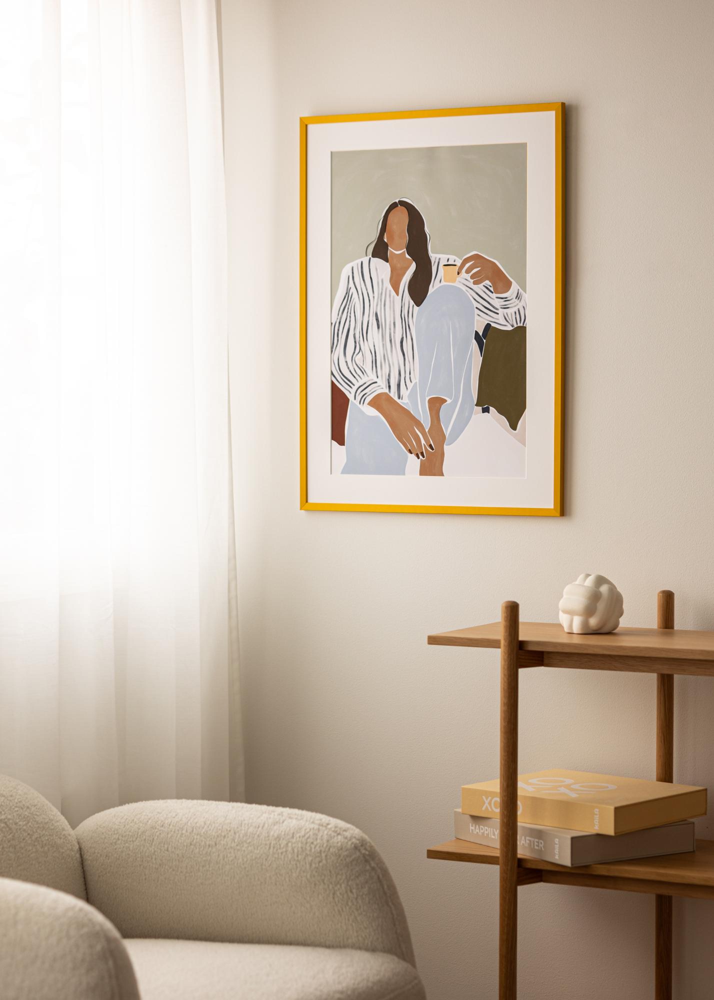 Hübscher Bilderrahmen in lebendiger, gelber Farbnuance aus der Serie NordicLine des dänischen Labels Incado. Der Bilderrahmen ist aus Holz gefertigt und zeichnet sich unter anderem durch sein minimalistisches, kantiges Rahmenprofil mit einer Leistenbreite und -Tiefe von 15 mm aus. Das matte Finish des Bilderrahmens oder auch Fotorahmens ist foliert und überzeugt durch den schönen gelben Farbton, der ein Stück Lebendigkeit an die Wand bringt.