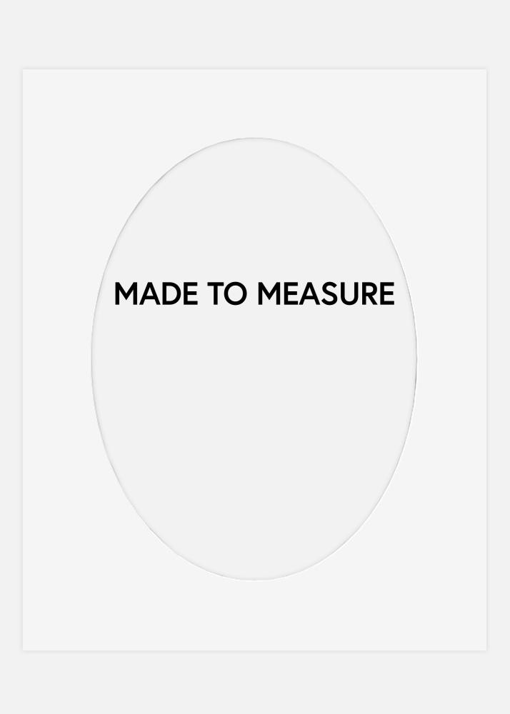 Weißes ovales oder rundes Passepartout in eigenen Maßen mit weißem schräg geschnittenem Rand, der direkt neben dem Motiv verläuft. Eine gute Wahl für Porträts im klassischen Stil.