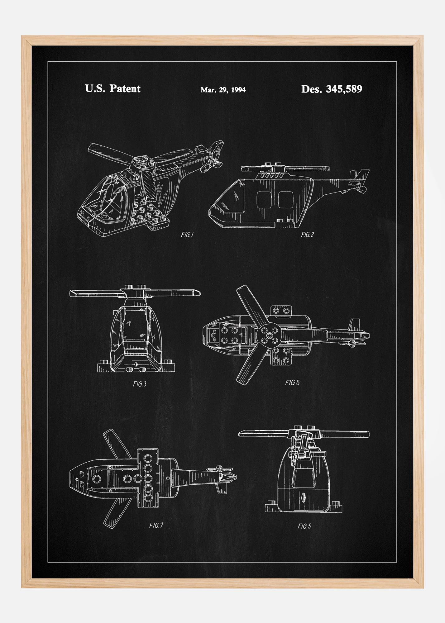 Dieses Patentposter präsentiert das detaillierte Handwerk hinter einem Helikopterdesign aus Lego, das durch das US-amerikanische Designpatent Des. 345,589, erteilt am 29. März 1994, geschützt ist. Das Poster zeigt eine Reihe von technischen Zeichnungen aus verschiedenen Blickwinkeln, die die dynamische und komplexe Natur des Fahrzeugs einfangen. Es ist eine Darbietung der Raffinesse der Ingenieurskunst und Aerodynamik und würdigt diejenigen, die zu den Fortschritten in der Luftfahrttechnik beitragen.
