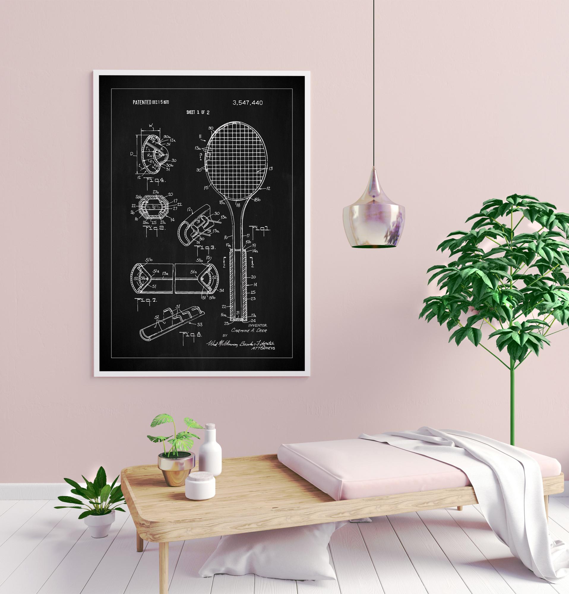 Patent Print - Tennis Racket - Black Poster (21x29.7 cm (A4))