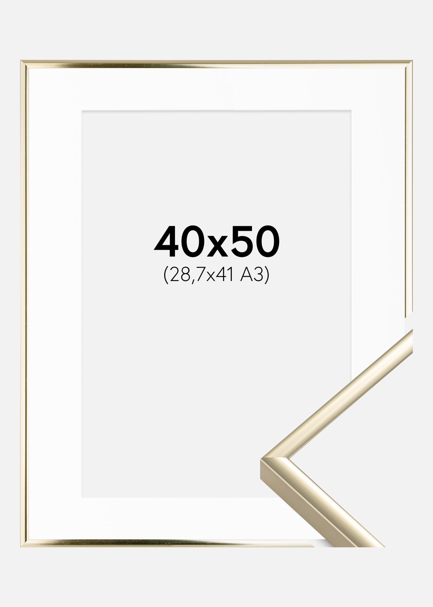 Rahmen Aluminium Gold glänzend 40x50 cm - Passepartout Weiß 29,7x42 cm