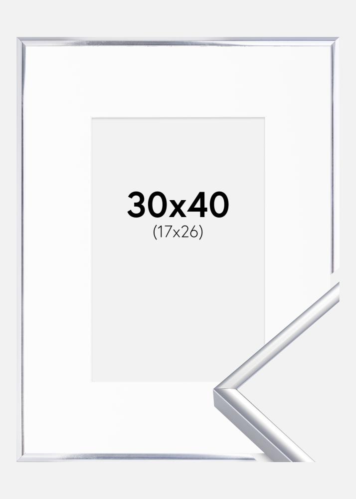 Rahmen Aluminium Silber glänzend 30x40 cm - Passepartout Weiß 18x27 cm