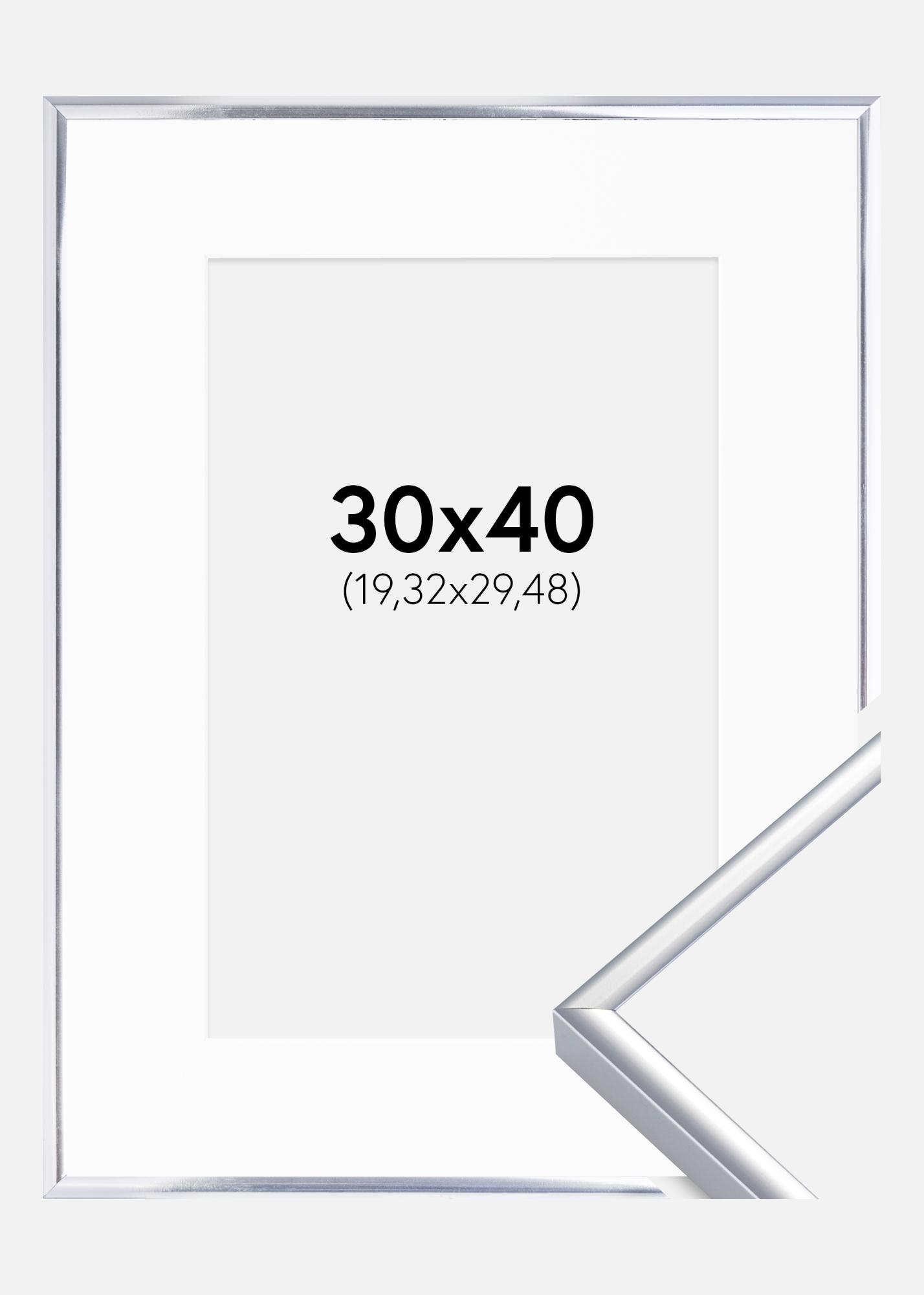Rahmen Aluminium Silber glänzend 30x40 cm - Passepartout Weiß 8x12 inches