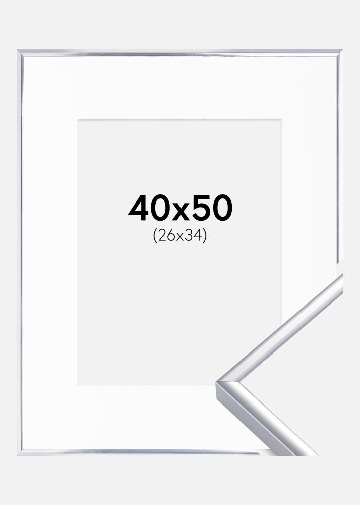 Rahmen Aluminium Silber glänzend 40x50 cm - Passepartout Weiß 27x35 cm