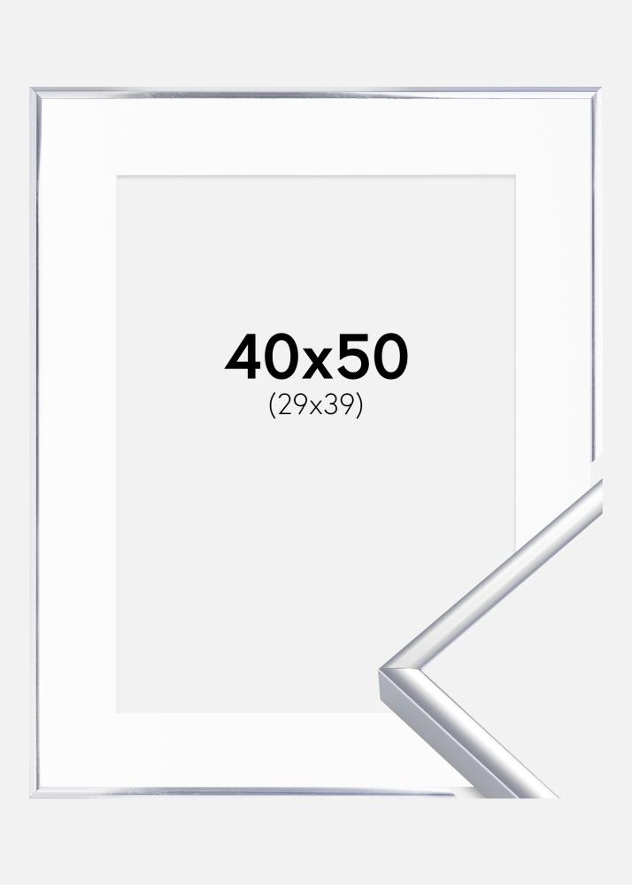 Rahmen Aluminium Silber glänzend 40x50 cm - Passepartout Weiß 30x40 cm