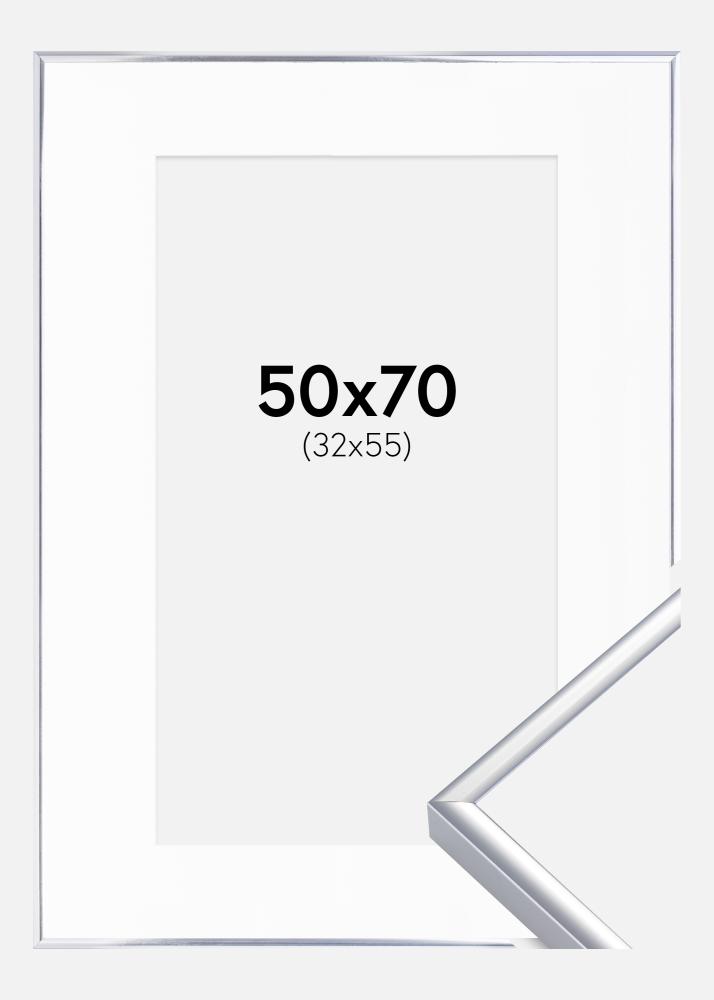 Rahmen Aluminium Silber glänzend 50x70 cm - Passepartout Weiß 33x56 cm