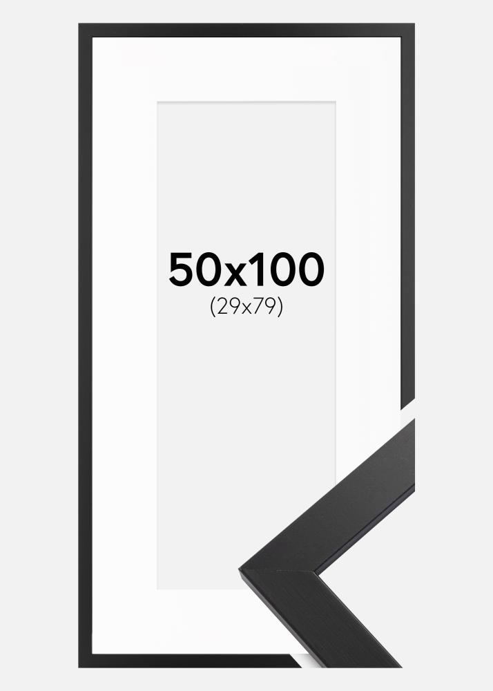 Rahmen Black Wood 50x100 cm - Passepartout Weiß 30x80 cm