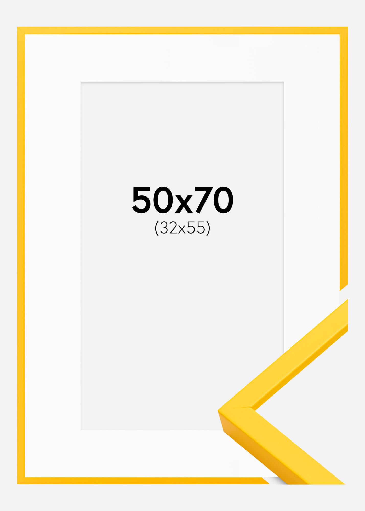 Rahmen E-Line Gelb 50x70 cm - Passepartout Weiß 33x56 cm