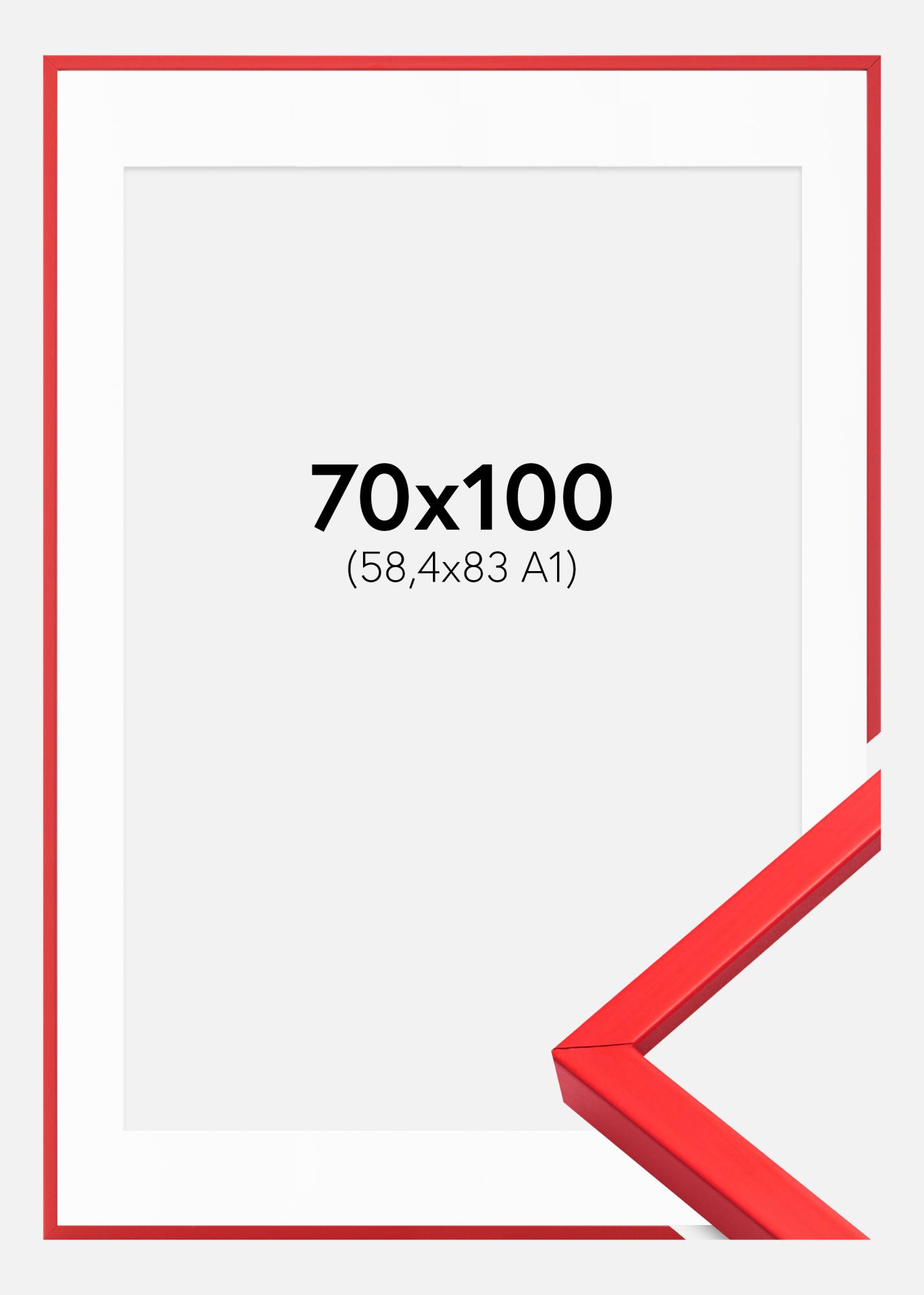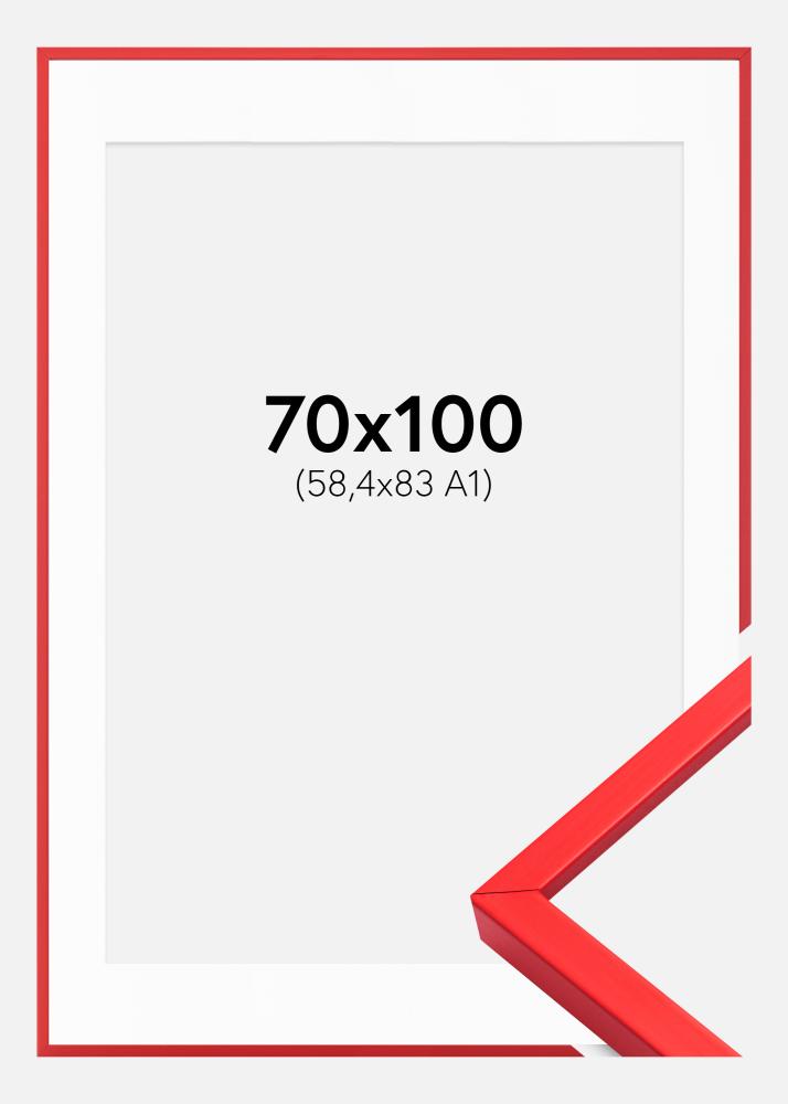 Rahmen E-Line Rot 70x100 cm - Passepartout Weiß 59,4x84 cm