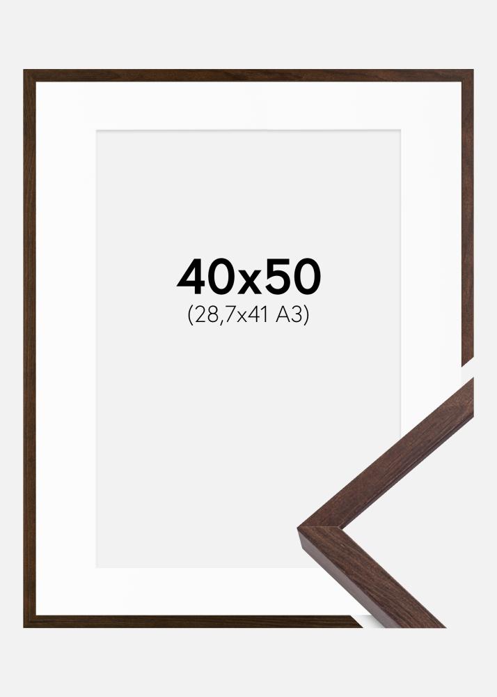Rahmen E-Line Walnuss 40x50 cm - Passepartout Weiß 29,7x42 cm