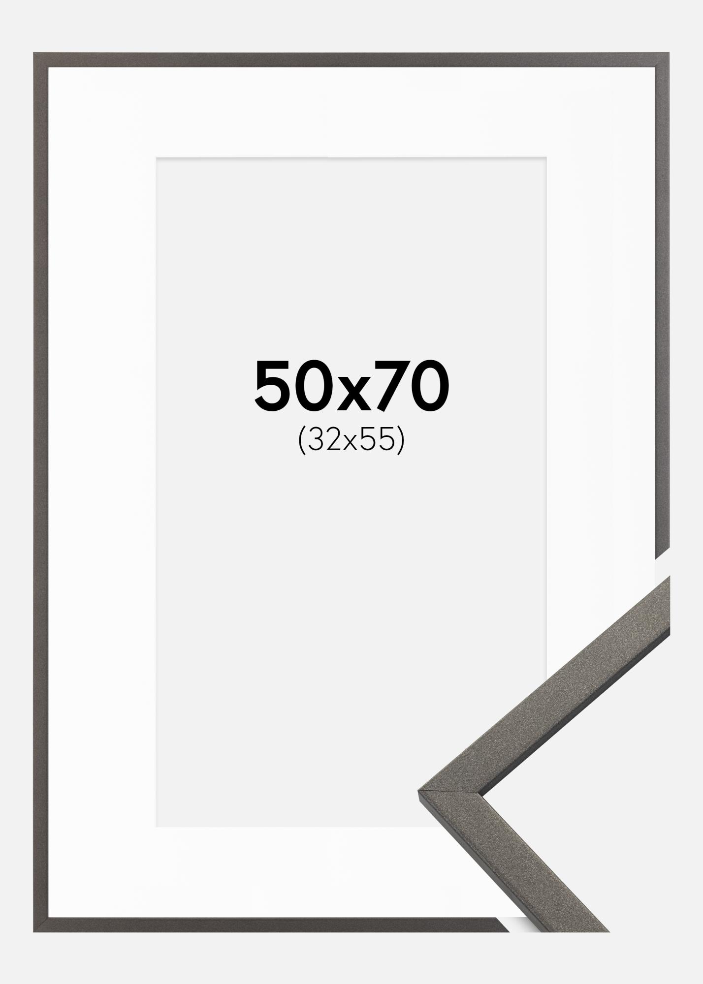 Rahmen Edsbyn Graphitgrau 50x70 cm - Passepartout Weiß 33x56 cm