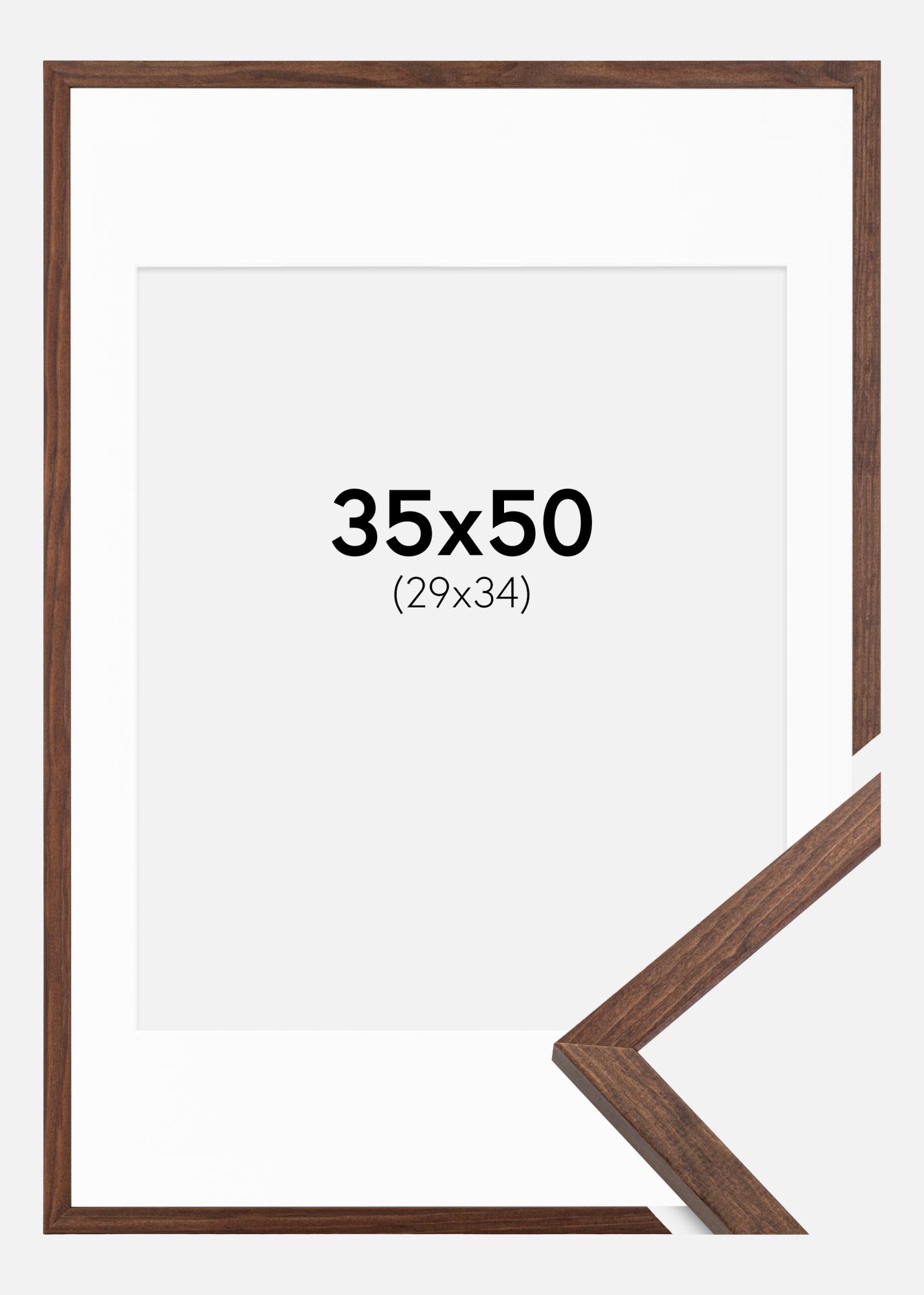Rahmen Galant Walnuss 35x50 cm - Passepartout Weiß 30x35 cm