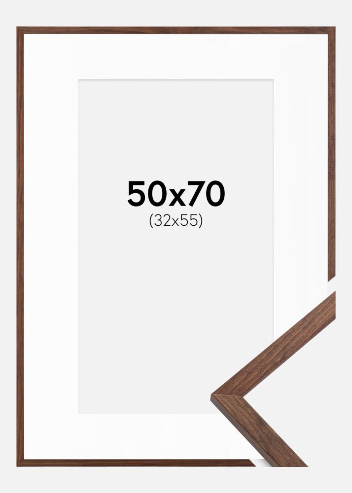 Rahmen Galant Walnuss 50x70 cm - Passepartout Weiß 33x56 cm