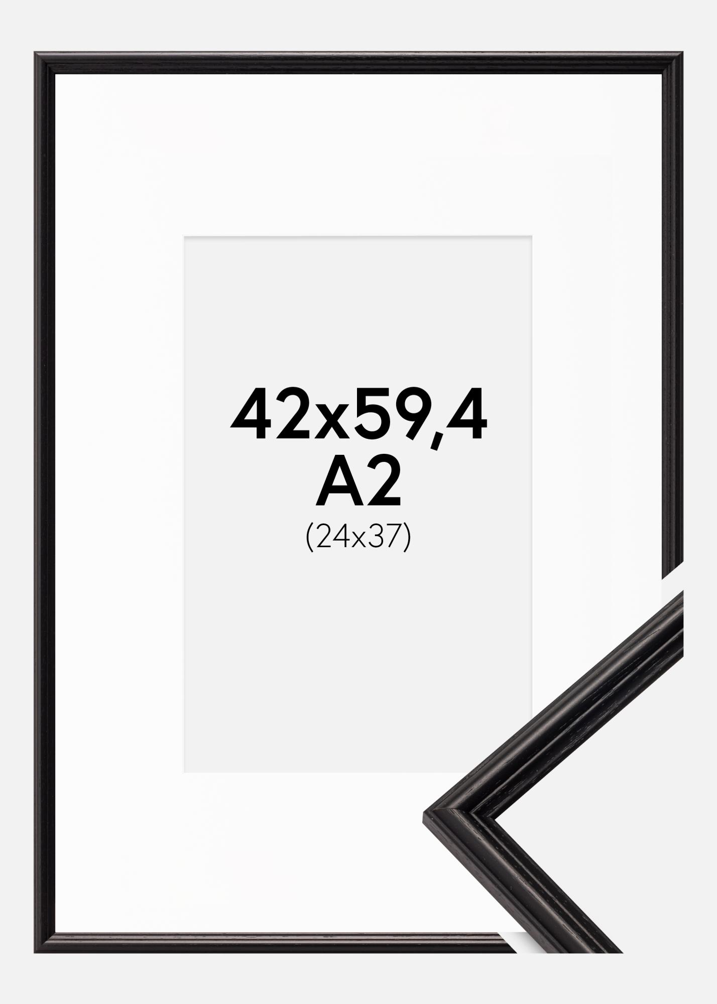 Rahmen Horndal Schwarz 42x59,4 cm (A2) - Passepartout Weiß 25x38 cm