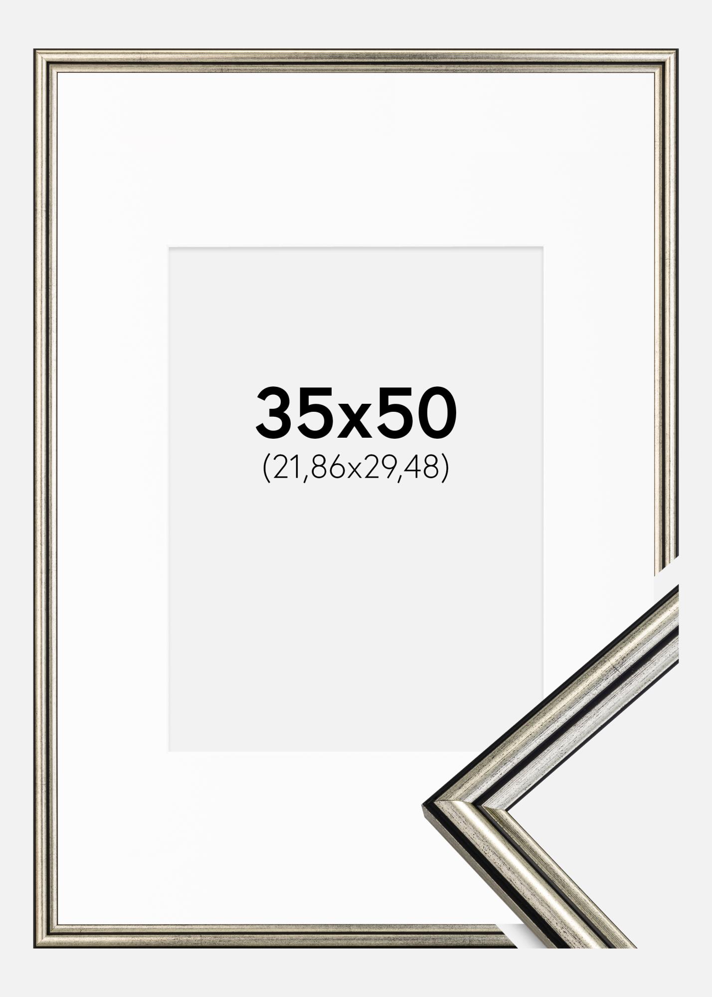 Rahmen Horndal Silber 35x50 cm - Passepartout Weiß 9x12 inches
