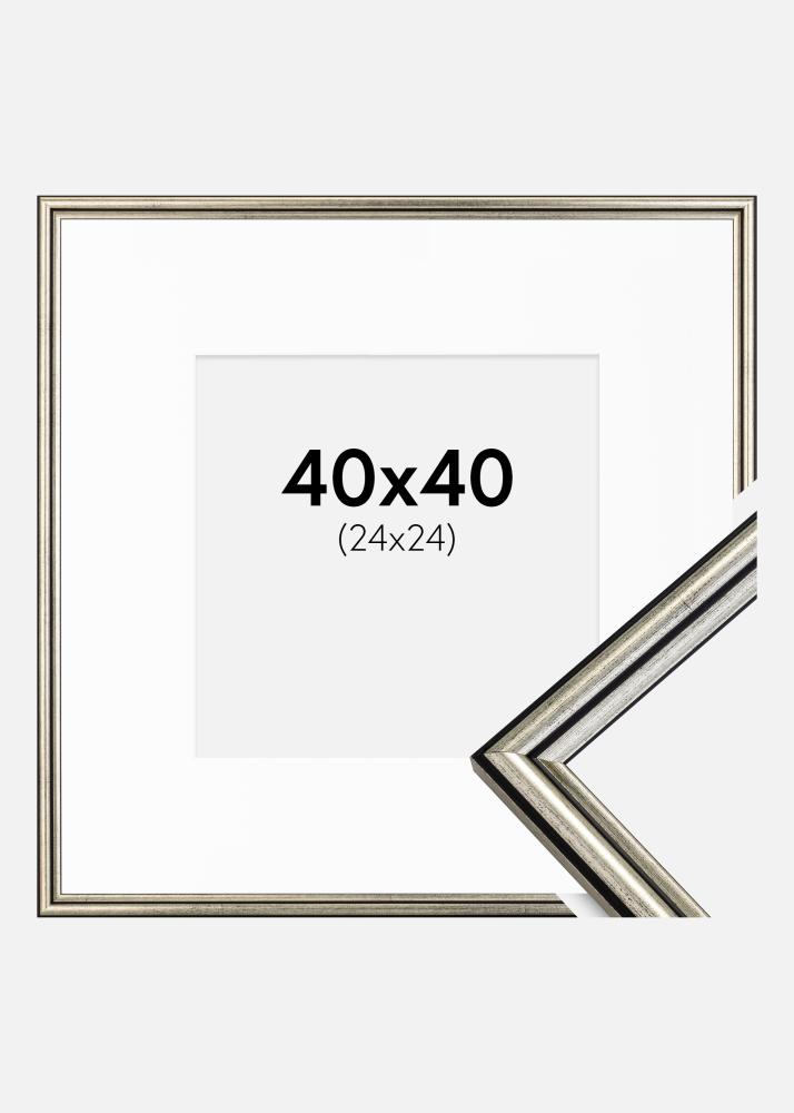 Rahmen Horndal Silber 40x40 cm - Passepartout Weiß 25x25 cm