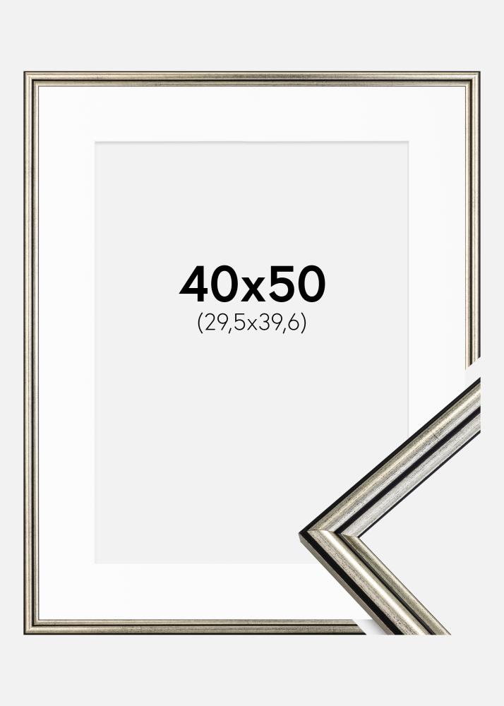 Rahmen Horndal Silber 40x50 cm - Passepartout Weiß 12x16 inches