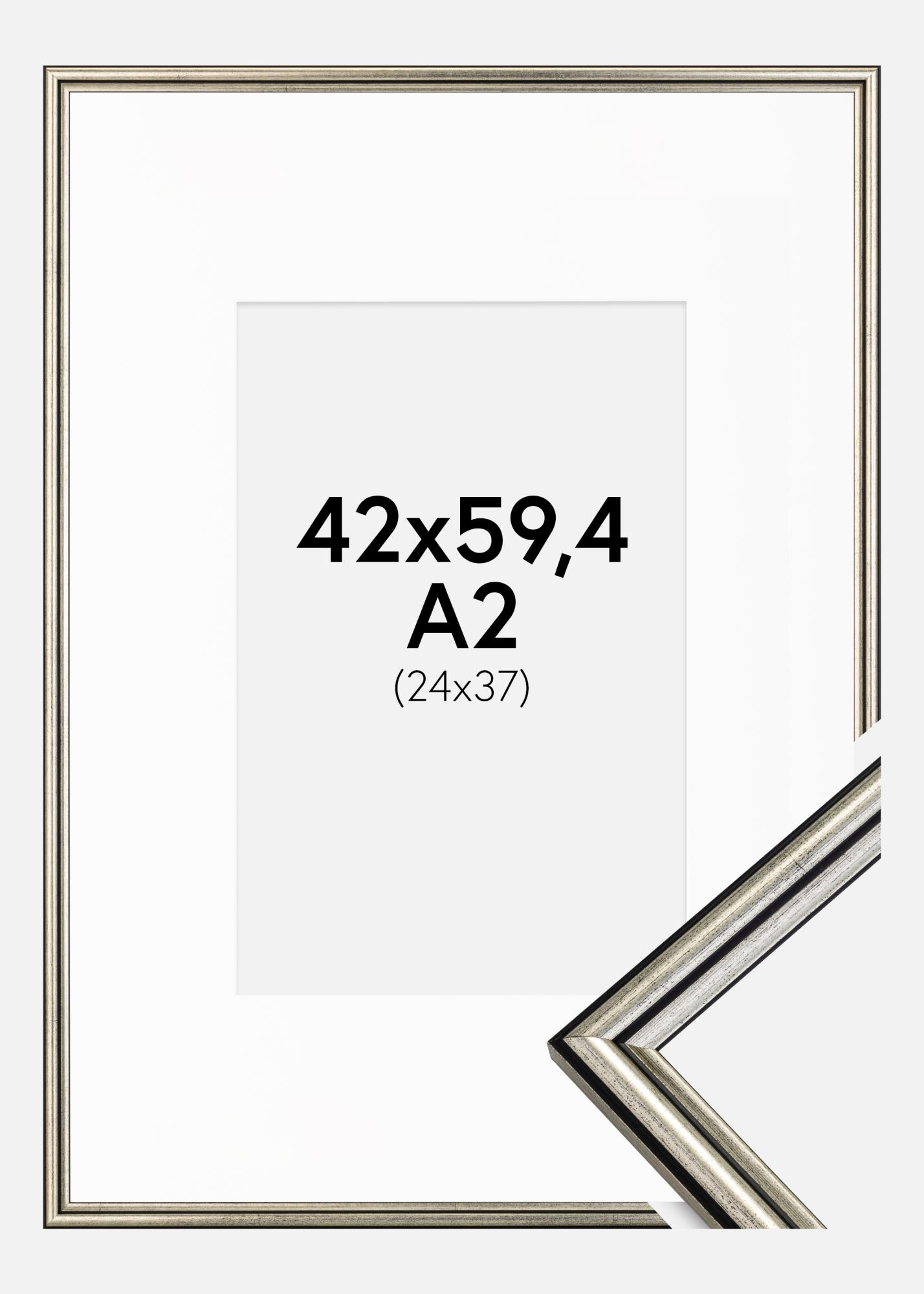 Rahmen Horndal Silber 42x59,4 cm (A2) - Passepartout Weiß 25x38 cm