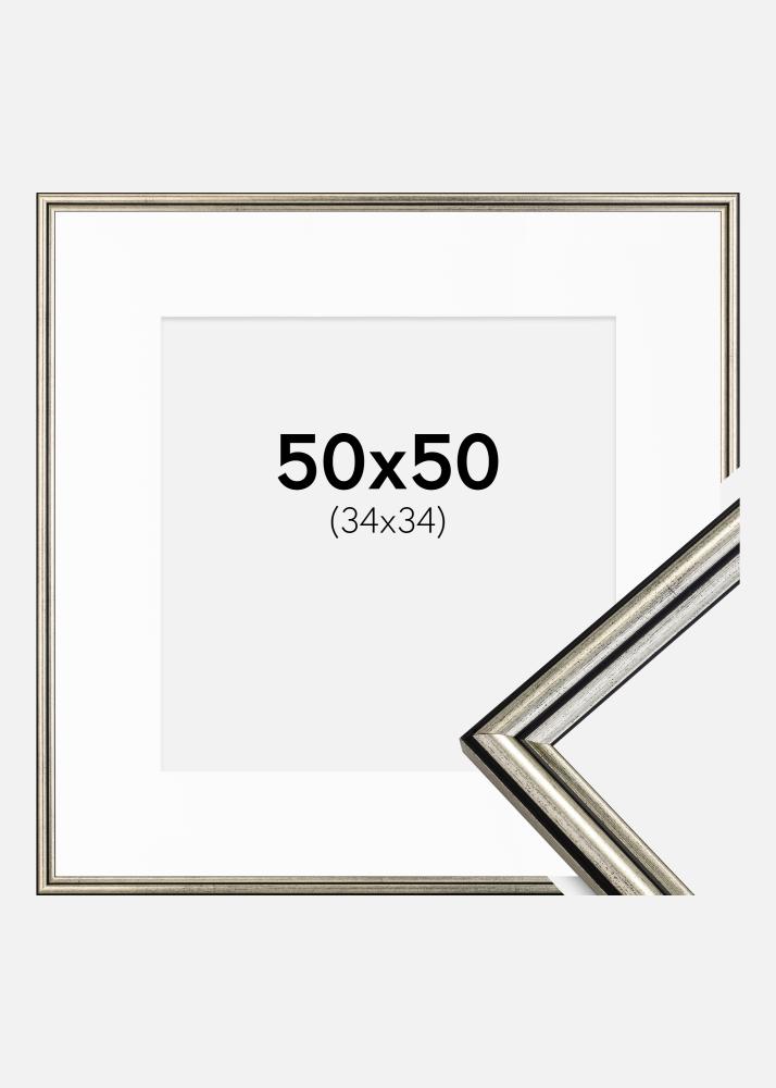 Rahmen Horndal Silber 50x50 cm - Passepartout Weiß 35x35 cm