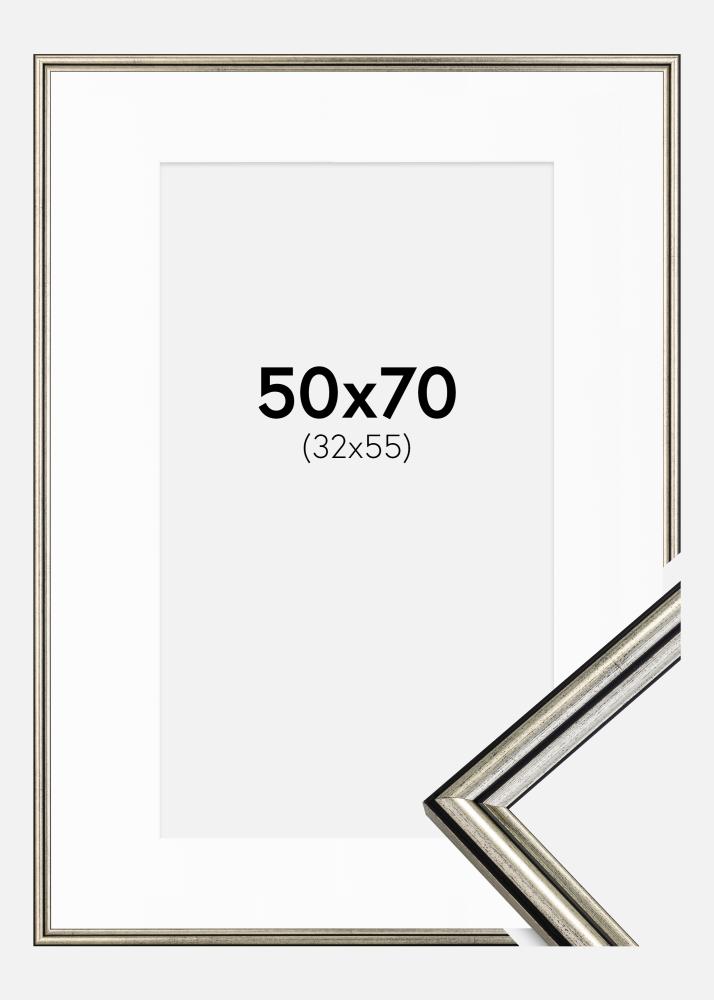 Rahmen Horndal Silber 50x70 cm - Passepartout Weiß 33x56 cm