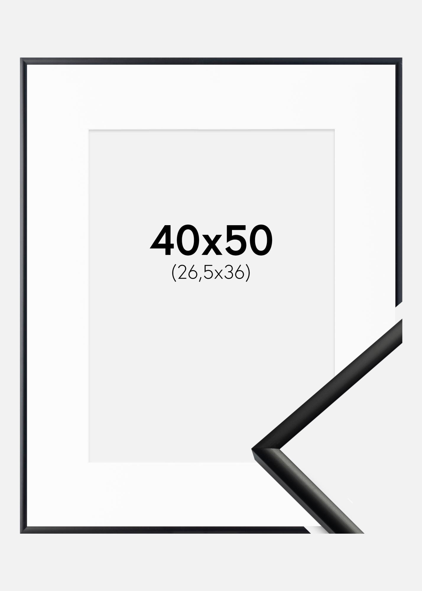 Rahmen New Lifestyle Matt Schwarz 40x50 cm - Passepartout Weiß 27,5x37 cm