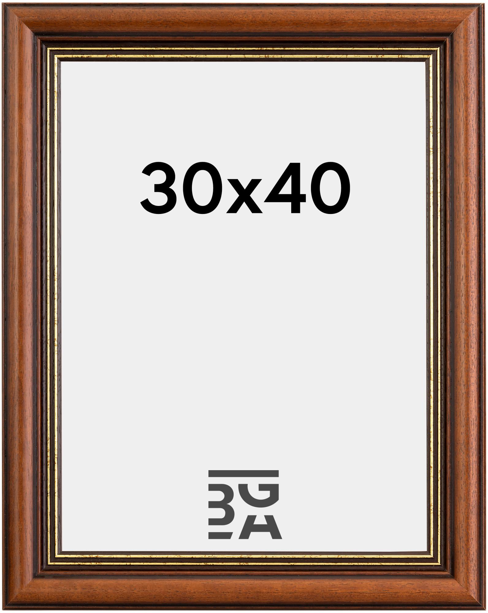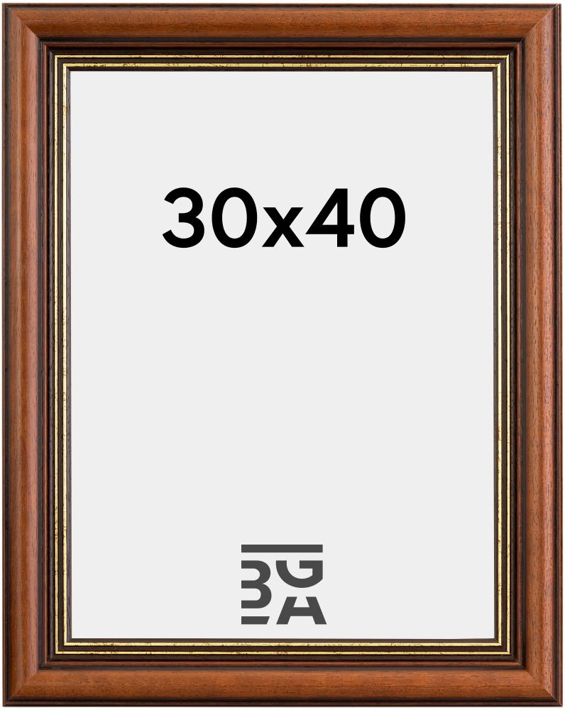 Bilderrahmen aus Holz, braun, mit eleganten Goldlinien