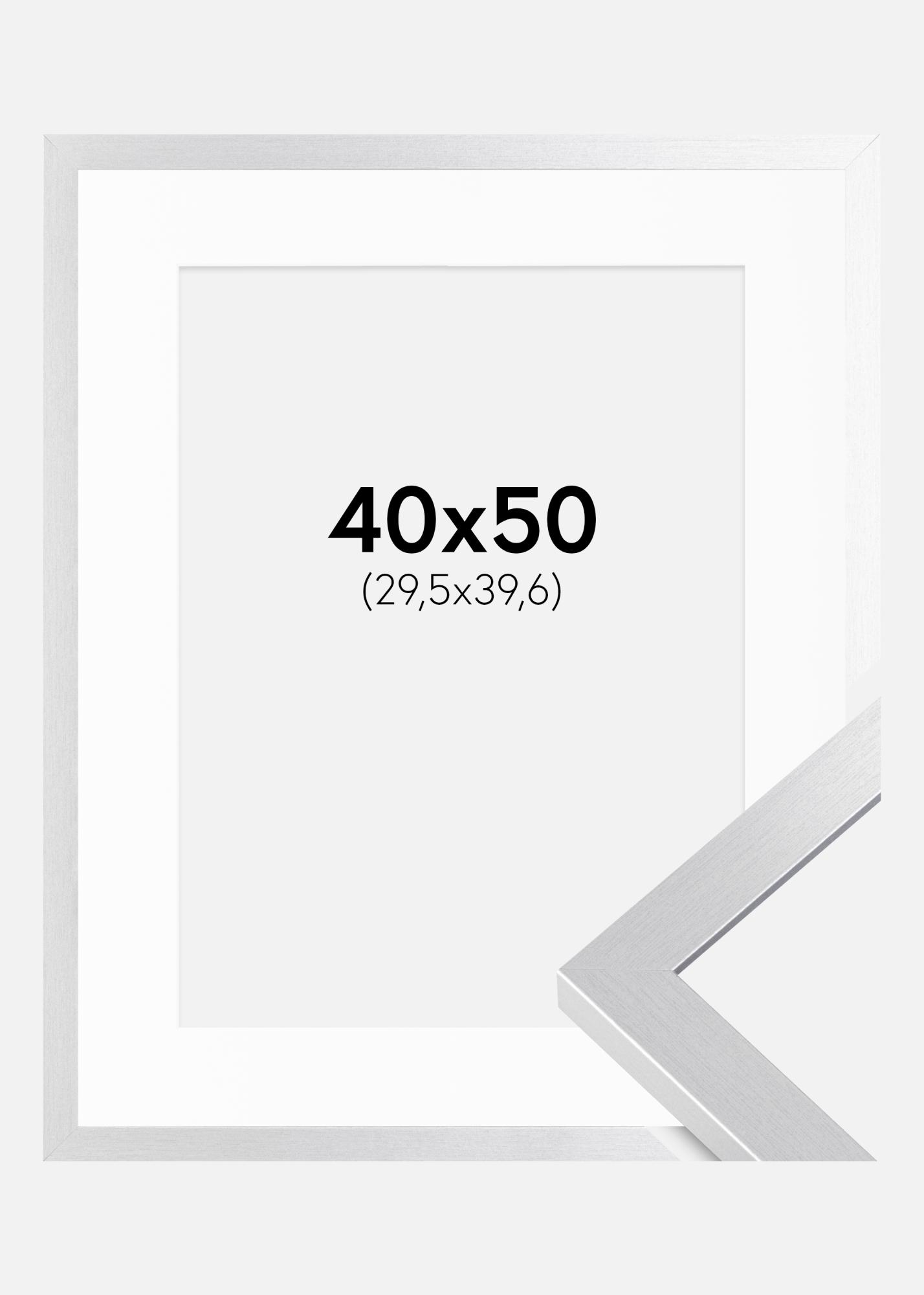 Rahmen Selection Silber 40x50 cm - Passepartout Weiß 12x16 inches